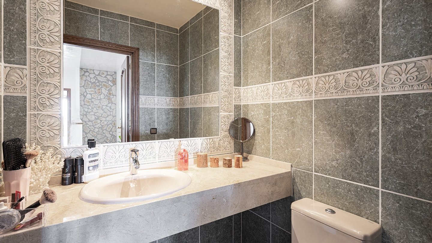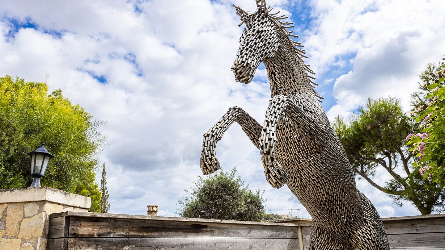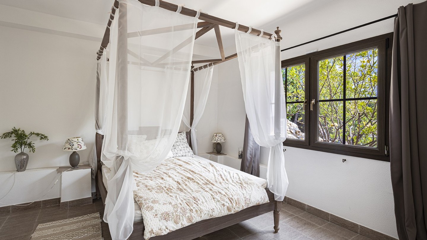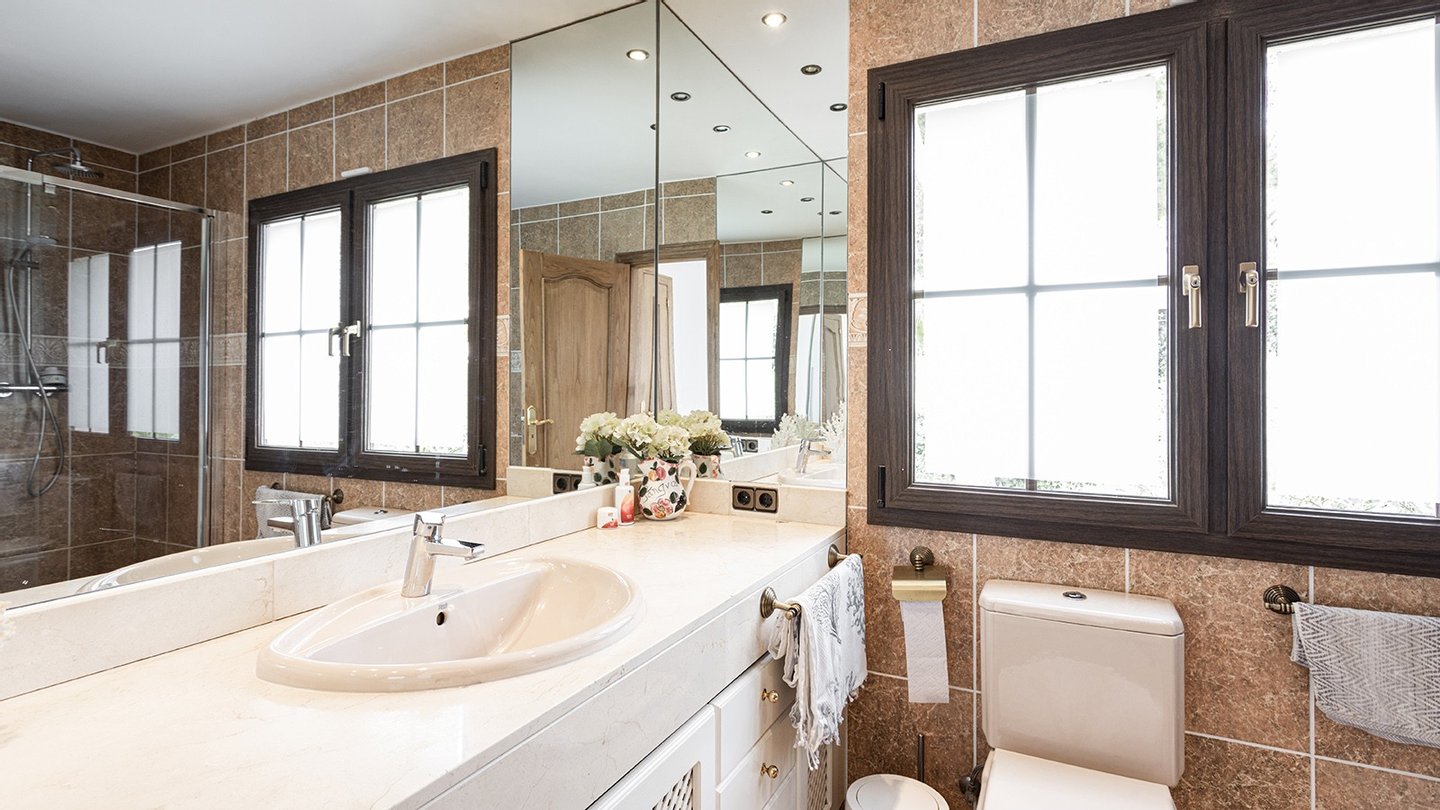 Die Immobilie verfügt über insgesamt vier großzügige Schlafzimmer und vier moderne Badezimmer, die hohen Wohnkomfort gewährleisten - ideal für Familien oder Gäste. Praktische Einbauschränke bieten viel Stauraum und unterstreichen die durchdachte Raumaufteilung. Zusätzliche Nutzflächen wie ein Abstellraum und ein Kellerraum schaffen weitere Ordnungsmöglichkeiten. Traditionelle Holzbalkendecken verleihen dem Haus mallorquinischen Charme und eine behagliche Atmosphäre. Für ein angenehmes Raumklima zu jeder Jahreszeit sorgen Fußbodenheizung, Klimaanlage sowie eine Ölzentralheizung  ? perfekt abgestimmt auf moderne Wohnansprüche. Der Außenbereich dieser Immobilie ist ebenso beeindruckend wie das Innere: Ein liebevoll angelegter Garten mit automatischer Bewässerung und stimmungsvoller Beleuchtung schafft eine Oase der Ruhe und Erholung. Ein integrierter BBQ-Bereich lädt zu geselligen Abenden unter freiem Himmel ein. Der private Pool mit ca. 30?m² bietet an warmen Tagen willkommene Abkühlung - mit herrlichem Weitblick bis zum Meer. Für Fahrzeuge stehen ein Garagenstellplatz sowie drei zusätzliche PKW-Stellplätze zur Verfügung. Ein elektrisches Garagentor sowie ein automatisches Zufahrtstor sorgen dabei für Komfort und Sicherheit.