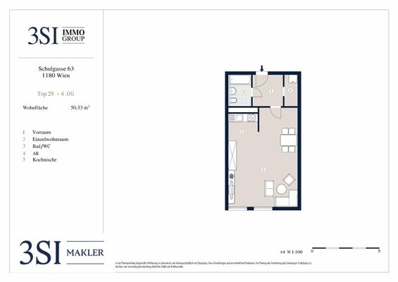 Zum Verkauf gelangt eine geräumige Single-Wohnung in einem gepflegten Neubau in Top-Lage des 18. Bezirks. Sie verfügt über ca. 50 m² Wohnfläche und teilt sich wie folgt auf:
