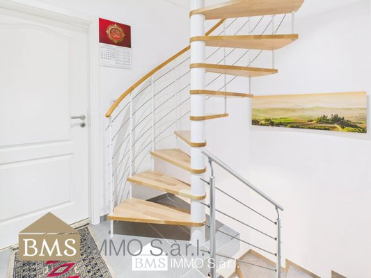 Die beiden Obergeschosse sind über eine geflieste Steintreppe erreichbar, zum Dachgeschoss führt eine neue Holztreppe.