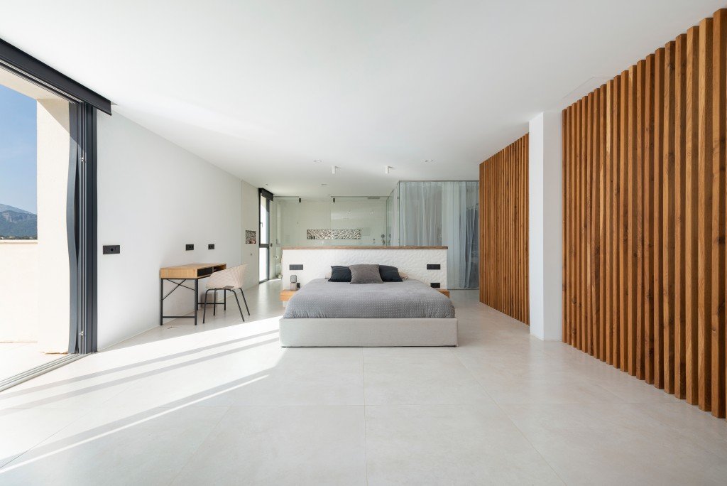 Mit einer bebauten Fläche von ca. 497 m² verfügt das Haus über vier großzügige Schlafzimmer und drei Badezimmer. Die Hauptsuite befindet sich im Obergeschoss und bietet ein luxuriöses Badezimmer mit Dusche und großer Badewanne sowie ein geräumiges privates Ankleidezimmer.