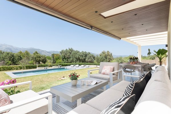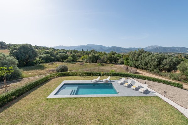 Im Außenbereich laden mehrere sonnige Terrassen und ein großer Pool dazu ein, das mediterrane Klima in absoluter Ruhe zu genießen.