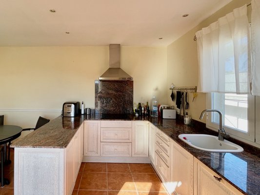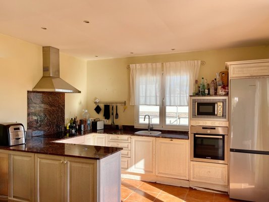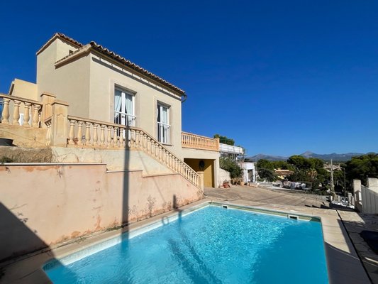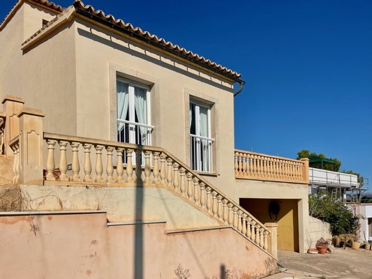 Das Haus selbst verfügt über großzügige Terrassenflächen, einen weitläufigen Pool und einen traumhaften Blick auf die umliegende Landschaft und die Berge. An besonders klaren Tagen zeigt sich sogar in der Ferne das funkelnde Meer.