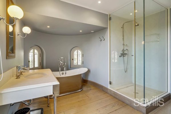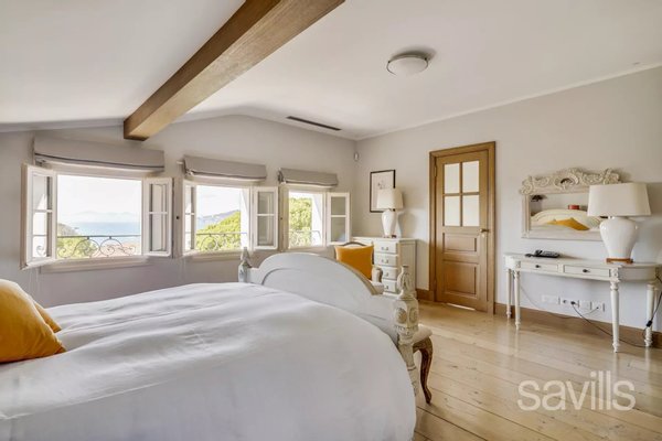 Im ersten Stock befinden sich ein Hauptschlafzimmer mit eigenem Bad, Dusche und WC sowie ein weiteres Doppelzimmer mit eigenem Bad.