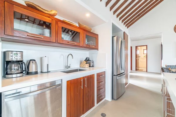 Diese fachmännisch gestaltete Immobilie bietet die perfekte Mischung aus anspruchsvollem Inselcharme und außergewöhnlichem Ertragspotenzial. Die Residenz ist als Haupthaus mit drei Schlafzimmern und zwei Bädern (1.741 m²) konfiguriert, ergänzt durch eine separate, in sich geschlossene private Casita mit einem Schlafzimmer und einem Badezimmer. Dieses einzigartige Layout maximiert die Privatsphäre der Gäste und bietet einen erheblichen Vorteil auf dem lukrativen Markt für Ferienwohnungen.