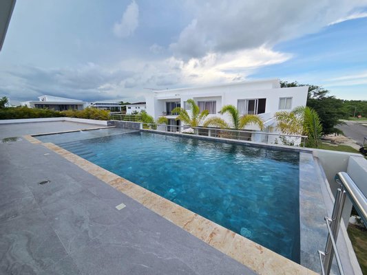 Moderne und schöne 2-stöckige Villa zum Verkauf mit 5 Schlafzimmern und 5 Bädern, privatem Pool, nur 3 Minuten vom internationalen Flughafen Punta Cana entfernt. Das Hotel liegt in einer exklusiven Wohnanlage mit 24/7 Sicherheitsdienst. Ideal zum