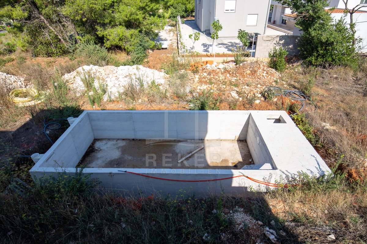 Zum Grundstück zählen der private Pool und Stellplätze im Außenbereich. Alle Genehmigungen sind vorhanden. Die Fortführung des Baus ist gesichert. Eine Villa mit Meerblick, großem Grundstück und Gestaltungsfreiheit. Interessant für Familien wie auch für Investoren.