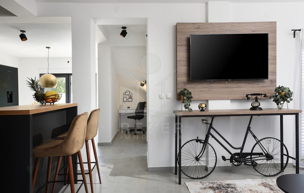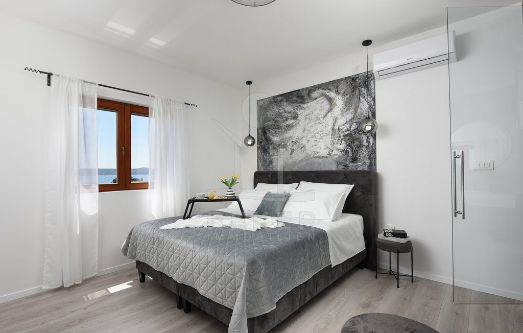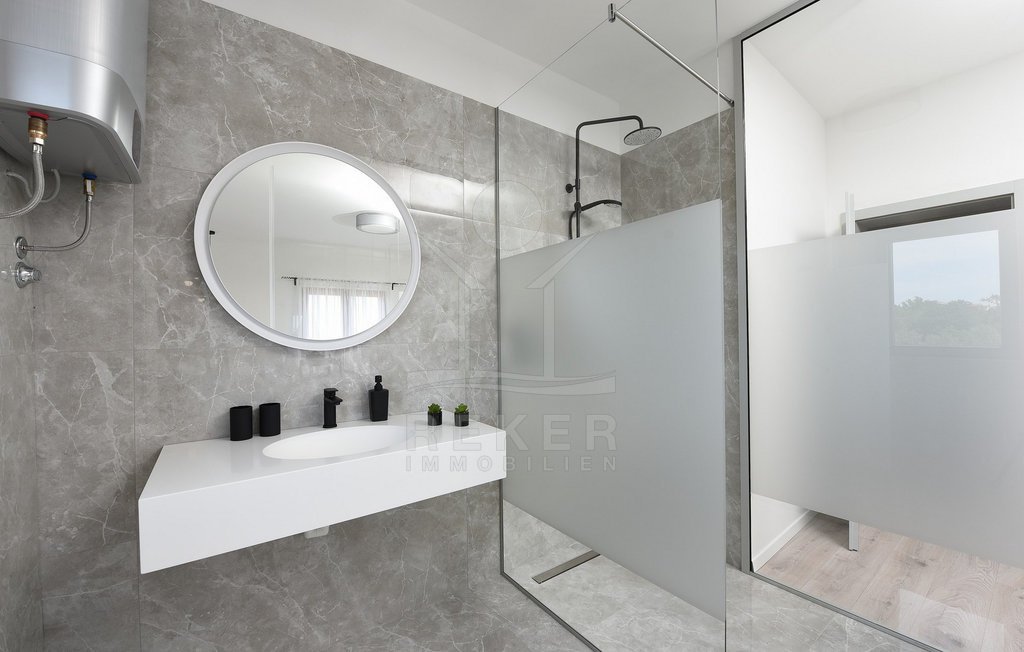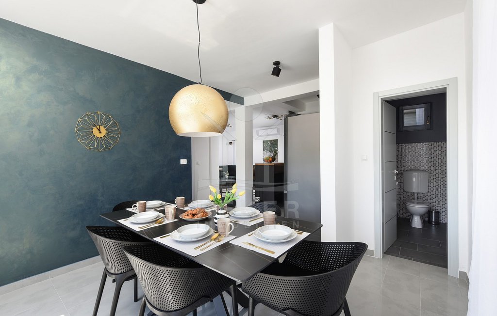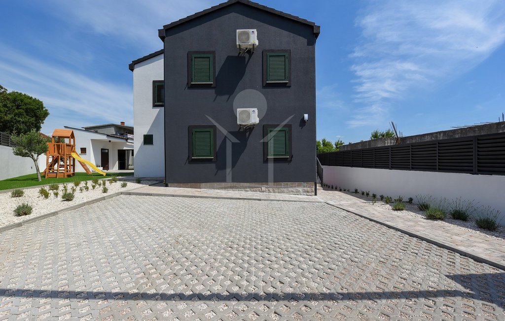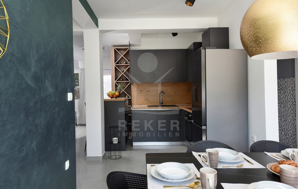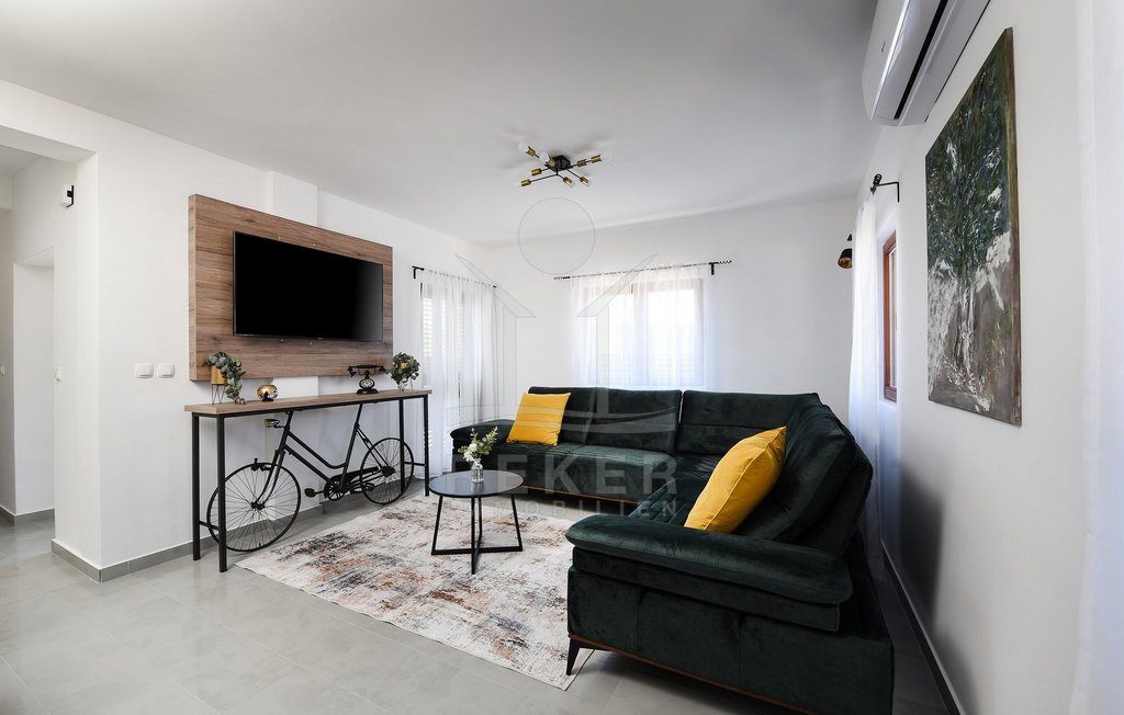 Maslenica – das bedeutet Ruhe, kurze Wege zum Meer und ein Ort, der wie gemacht ist für Familien oder entspannte Ferien. Genau hier steht diese freistehende Villa, nur etwa 400 Meter vom Meer entfernt. Die gepflegte Umgebung mit guter Anbindung macht