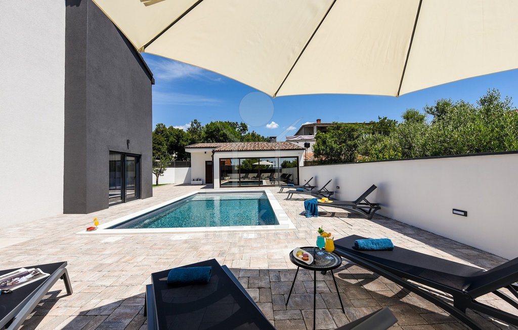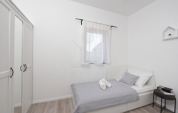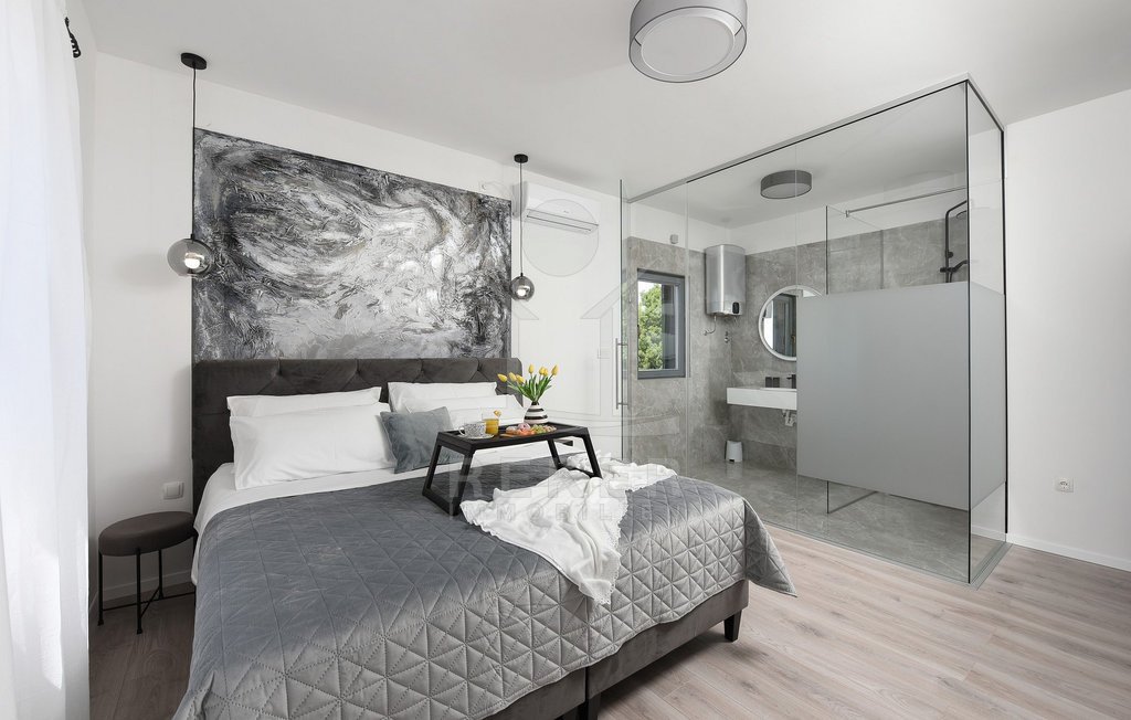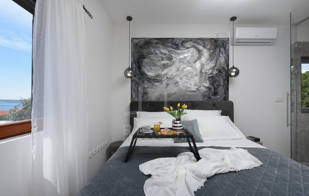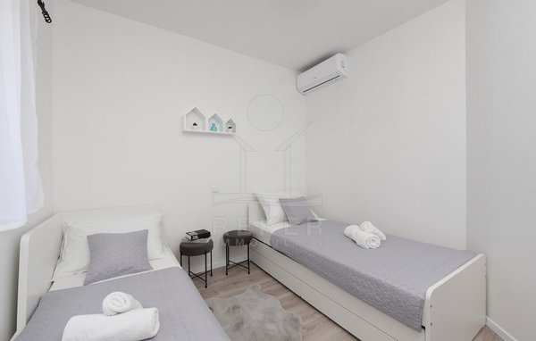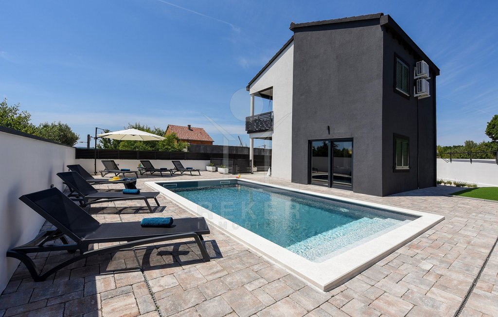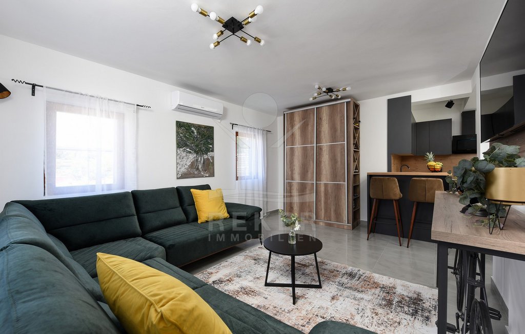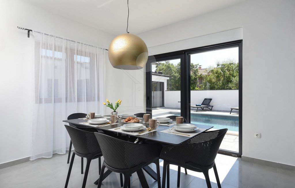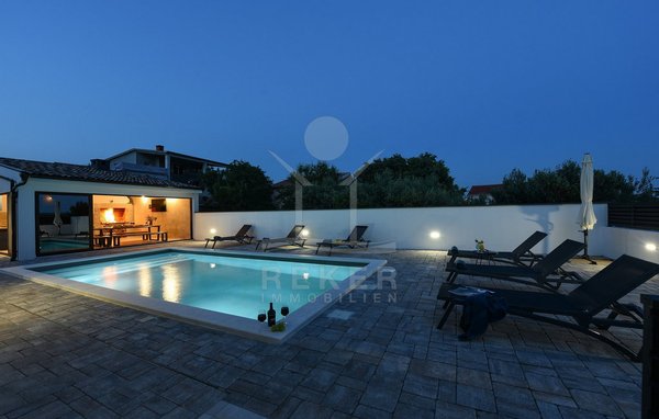 Maslenica – das bedeutet Ruhe, kurze Wege zum Meer und ein Ort, der wie gemacht ist für Familien oder entspannte Ferien. Genau hier steht diese freistehende Villa, nur etwa 400 Meter vom Meer entfernt. Die gepflegte Umgebung mit guter Anbindung macht