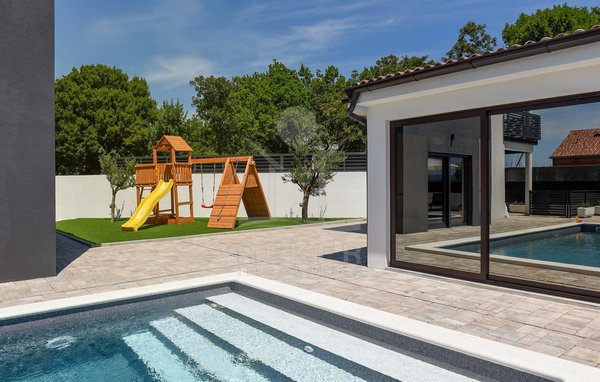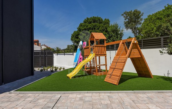 Auf 463 m² Grundstücksfläche erwartet Sie viel Privatsphäre, dazu jede Menge Platz zum Leben unter freiem Himmel. Der beheizte Pool mit 32 m² Fläche und großzügiger Liegezone bildet das Herzstück. Gleich daneben befindet sich ein separates Poolhaus mit Sommerküche, Aufenthaltsbereich und WC. Wer Kinder dabei hat, wird den Spielplatz aus Lärchenholz schätzen – mit Rutsche, Schaukel und Spielhaus. Alles sicher und direkt auf dem Grundstück.