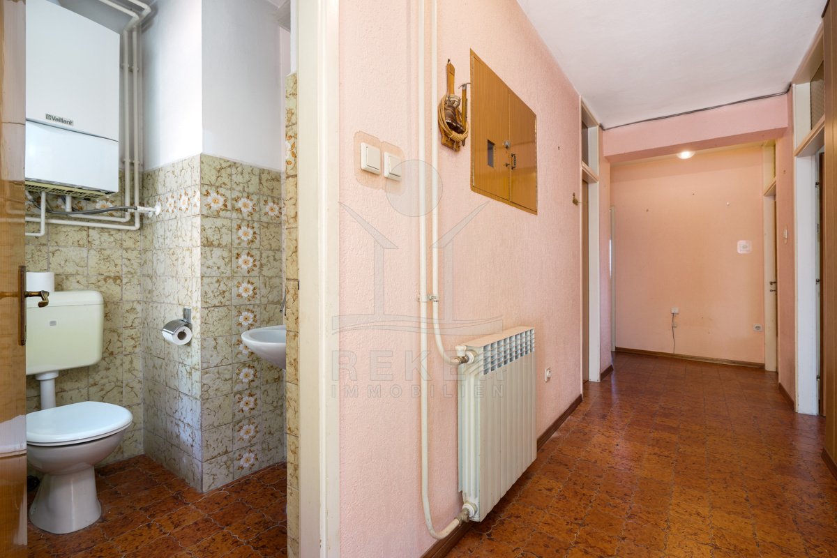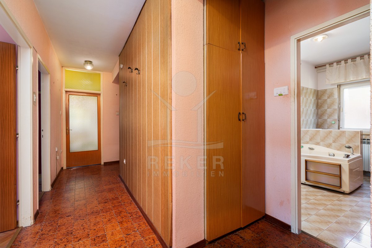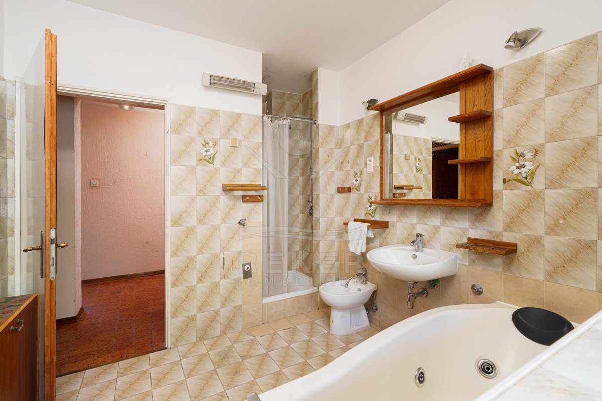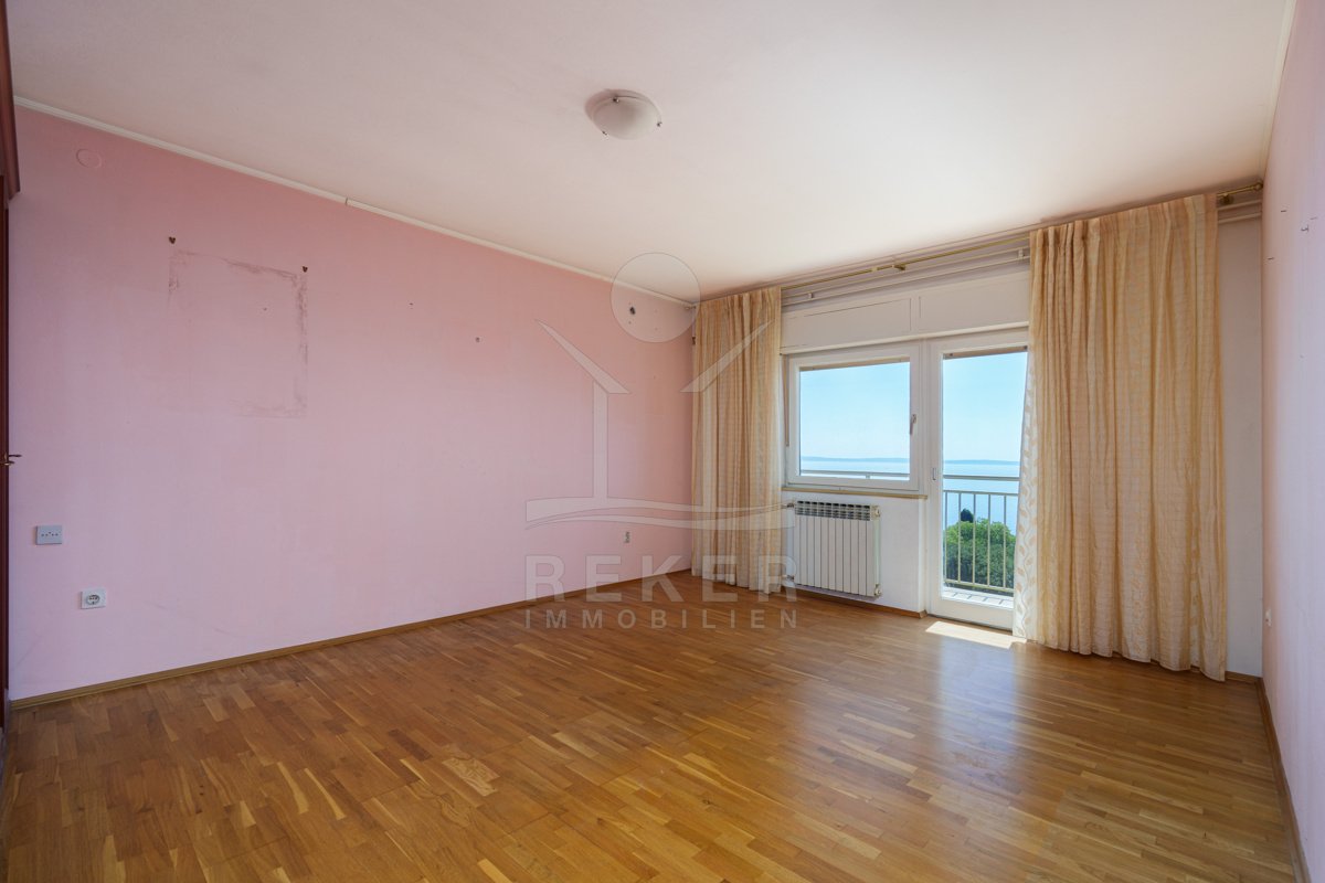 Nur rund 150 Meter vom Meer entfernt befindet sich diese großzügige Etagenwohnung. Sie wohnen hier ruhig und gleichzeitig gut angebunden. Der Strand ist in wenigen Schritten erreicht, dazu kommt der eindrucksvolle Blick über die Kvarner-Bucht. Direkt vor dem Haus stehen Ihnen eine Garage mit 24 m² und ein privater Stellplatz zur Verfügung. In dieser Gegend ein seltener Vorteil.
