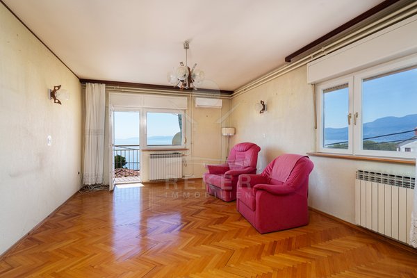 Nur rund 150 Meter vom Meer entfernt befindet sich diese großzügige Etagenwohnung. Sie wohnen hier ruhig und gleichzeitig gut angebunden. Der Strand ist in wenigen Schritten erreicht, dazu kommt der eindrucksvolle Blick über die Kvarner-Bucht. Direkt