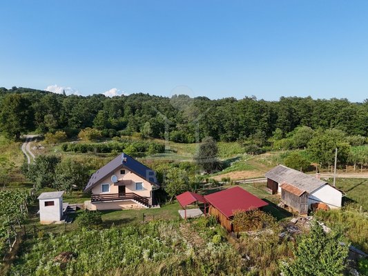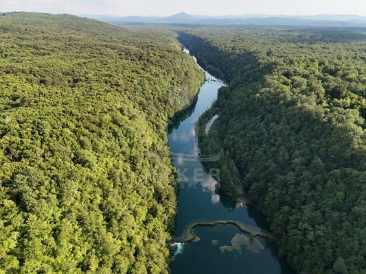 In Svojić, nur einen Kilometer von der Mrežnica entfernt, wartet ein Anwesen mit über 19.000 m² Land. Hier wohnen Sie inmitten von Wäldern und Feldern. Für den Alltag sind es 20 Minuten bis Barilović mit Geschäften, Schule und Gesundheitszentrum. Karlovac mit Krankenhaus und großen Märkten erreichen Sie ebenso bequem. Die Zufahrt führt über eine 2,5 km lange Schotterstraße, Ihr Auto parken Sie direkt auf dem Grundstück.