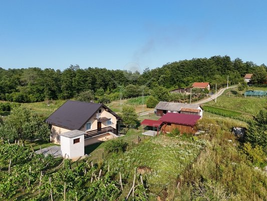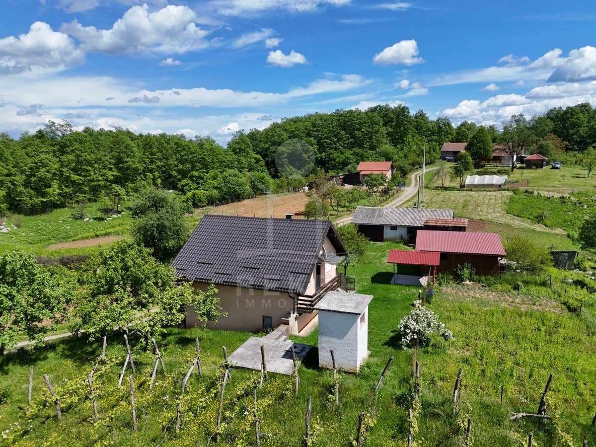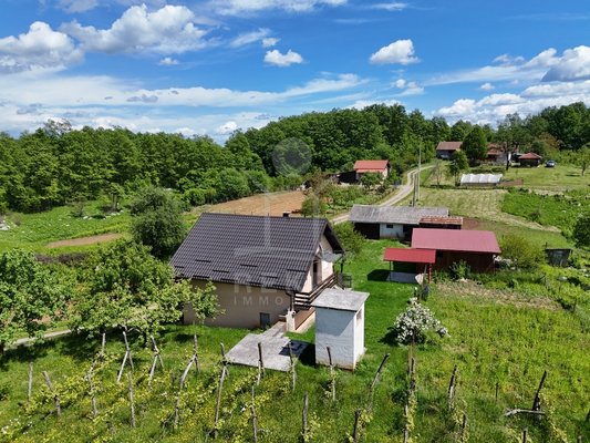 In Svojić, nur einen Kilometer von der Mrežnica entfernt, wartet ein Anwesen mit über 19.000 m² Land. Hier wohnen Sie inmitten von Wäldern und Feldern. Für den Alltag sind es 20 Minuten bis Barilović mit Geschäften, Schule und Gesundheitszentrum.