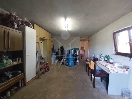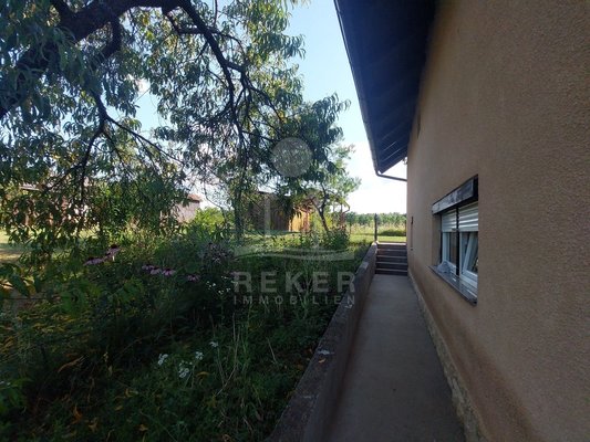 Das Gelände ist weitläufig und vielseitig nutzbar. Obstbäume bringen frische Früchte. Nebengebäude ergänzen das Anwesen: Räucherraum, Holzlager, Stallungen, Garage und Kornspeicher. Unter dem überdachten Sitzplatz verbringen Sie angenehme Stunden im Freien. Vom Balkon des Hauses reicht der Blick weit über die Landschaft.
