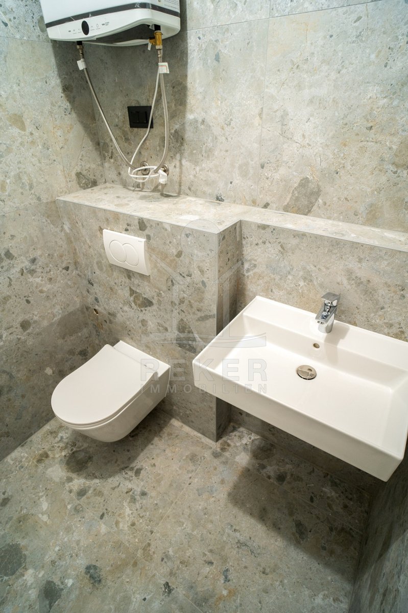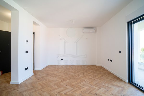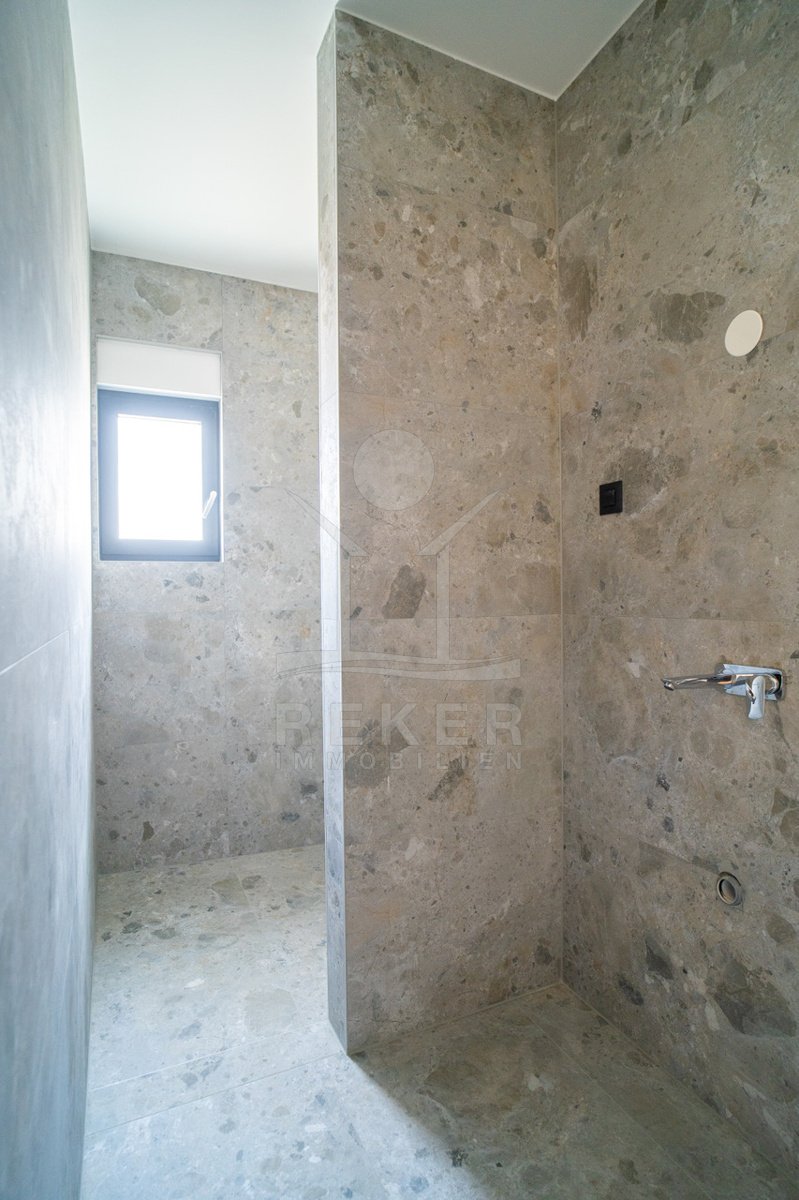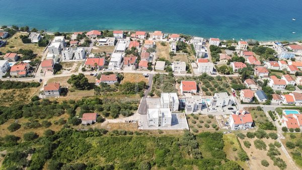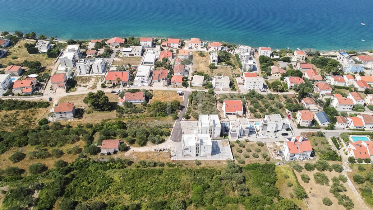 Nur ein paar Minuten von Zadar entfernt und doch mitten im Grünen – dieses moderne Haus liegt in einer kleinen, ruhigen Wohnsiedlung Dalmatiens. Rundherum: Olivenbäume, moderne Villen und die entspannte Atmosphäre der Küste. Das Meer? Nur 200 Meter entfernt. Sie hören es rauschen, noch bevor Sie es sehen.