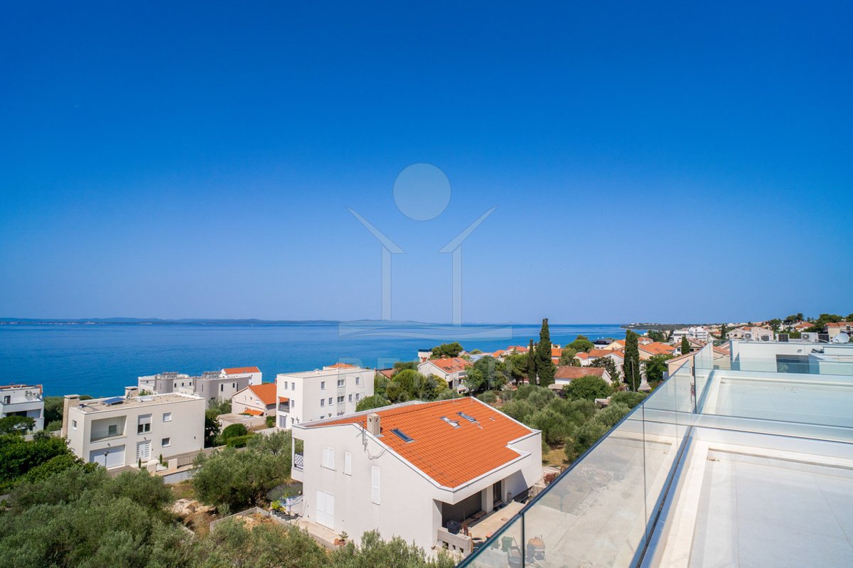 Nur ein paar Minuten von Zadar entfernt und doch mitten im Grünen – dieses moderne Haus liegt in einer kleinen, ruhigen Wohnsiedlung Dalmatiens. Rundherum: Olivenbäume, moderne Villen und die entspannte Atmosphäre der Küste. Das Meer? Nur 200 Meter entfernt. Sie hören es rauschen, noch bevor Sie es sehen.