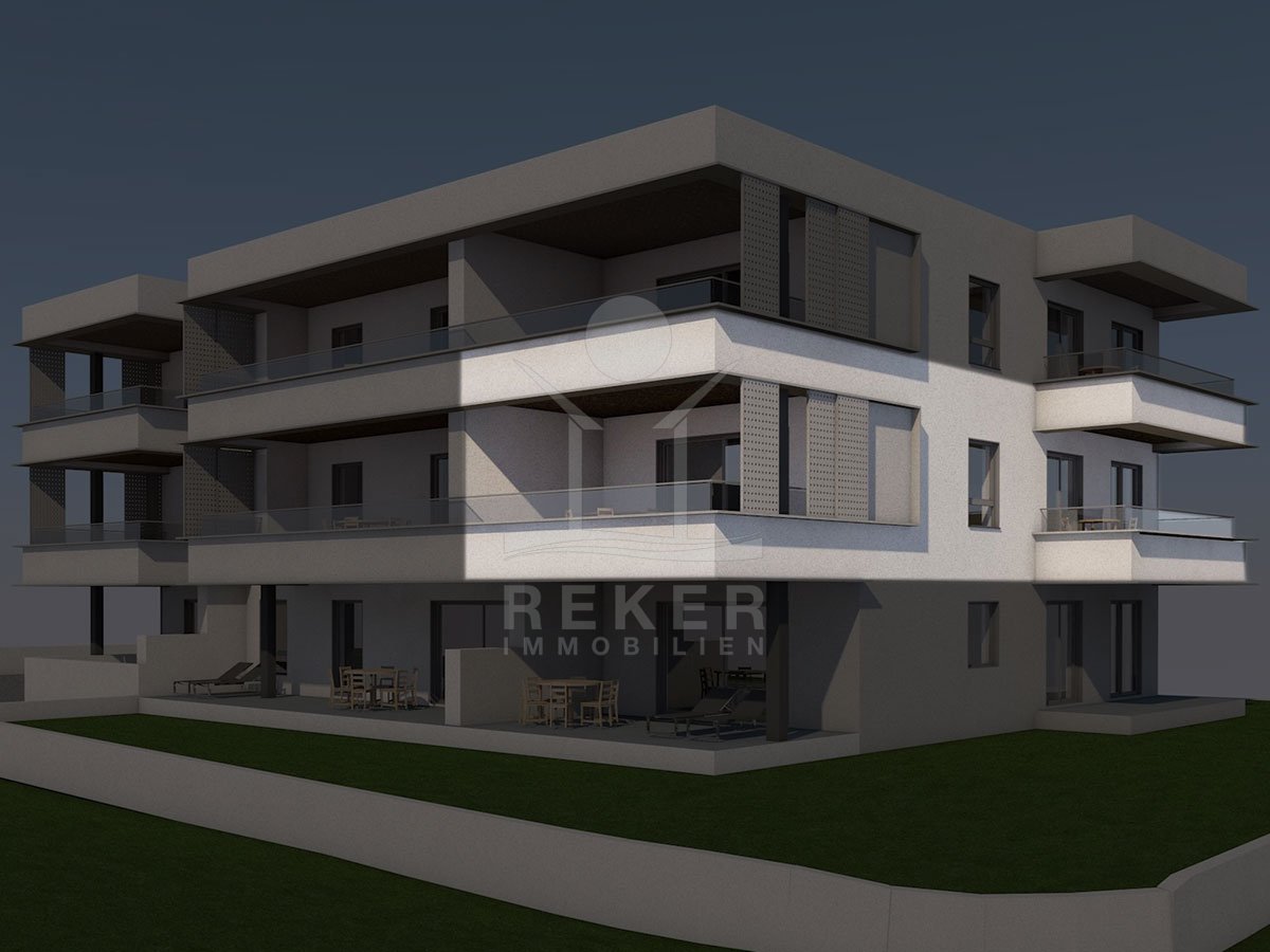 In Vodice entsteht ein Wohngebäude mit nur neun Einheiten. Die Lage ist ruhig, rund 1.400 m vom Meer und ebenso weit vom Stadtzentrum entfernt. So erreichen Sie Stadt und Meer in wenigen Minuten und haben dennoch genügend Abstand zur Umgebung.