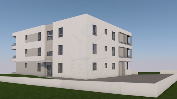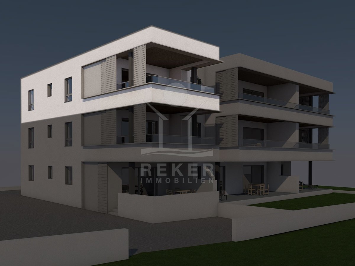 In Vodice entsteht ein Wohngebäude mit nur neun Einheiten. Die Lage ist ruhig, rund 1.400 m vom Meer und ebenso weit vom Stadtzentrum entfernt. So erreichen Sie Stadt und Meer in wenigen Minuten und haben dennoch genügend Abstand zur Umgebung.