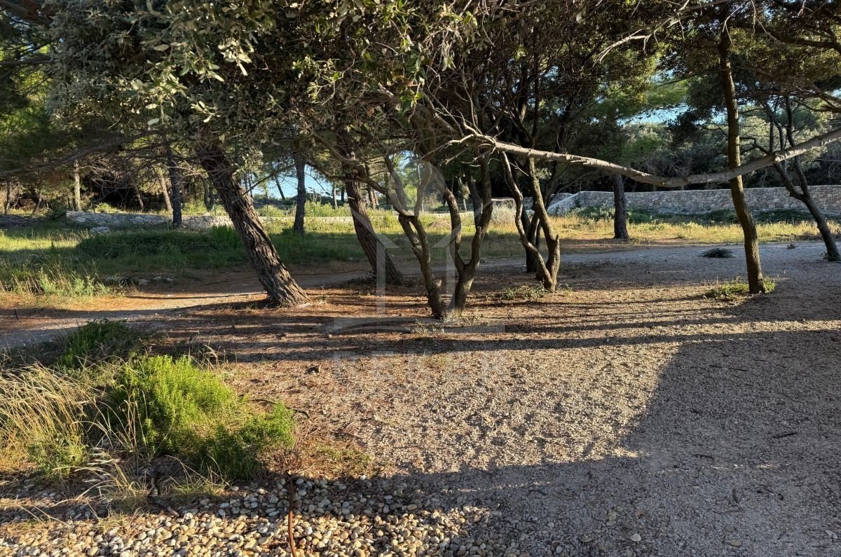 Direkt an der Küste der Stadt Krk befindet sich dieses Baugrundstück mit 8.000 m² Fläche. Die Lage ist außergewöhnlich mit viel Grün und altem Baumbestand. Das Grundstück grenzt unmittelbar an die Promenade und bietet direkten Zugang zum Strand. Der