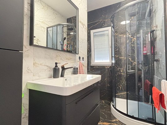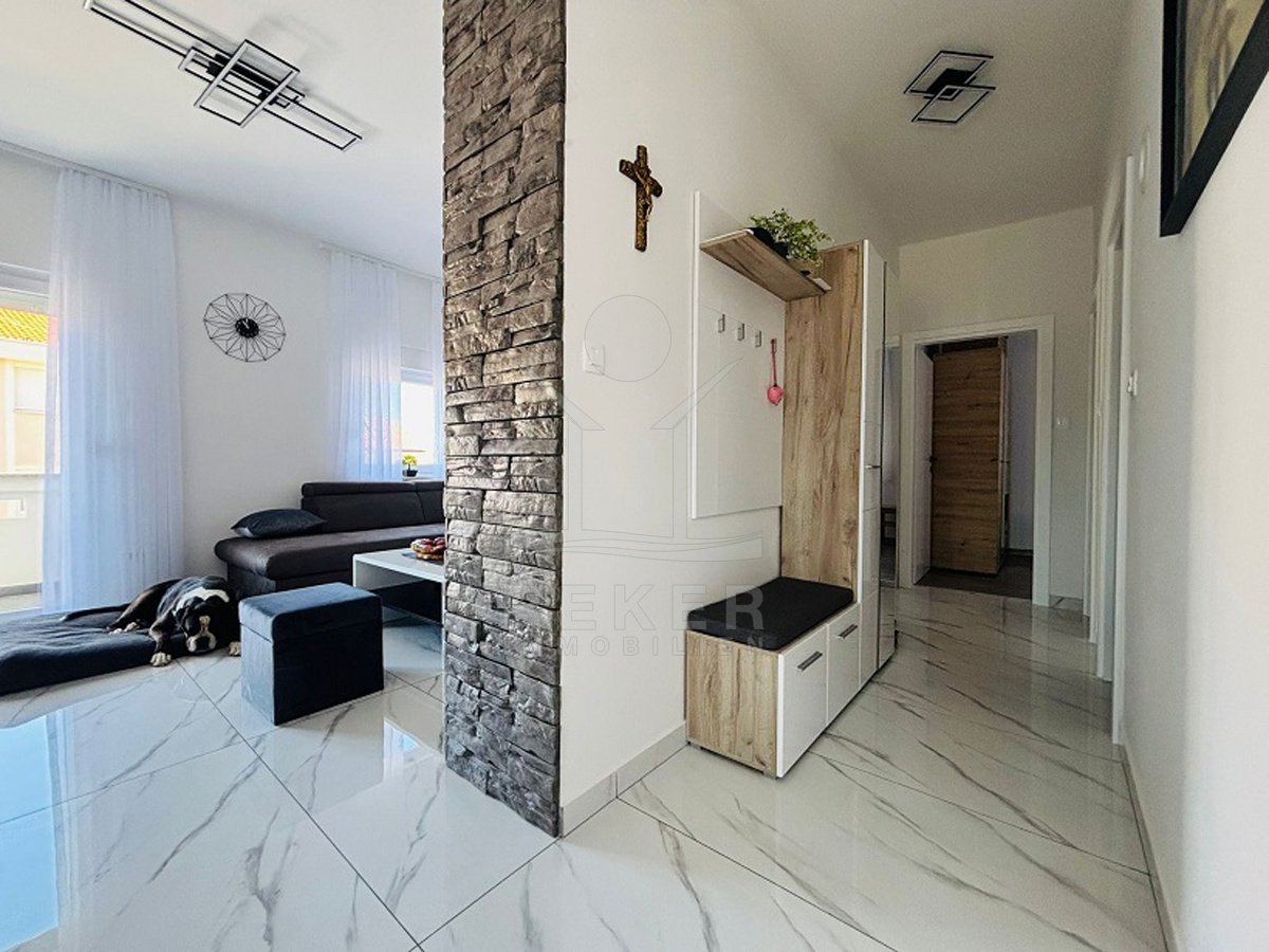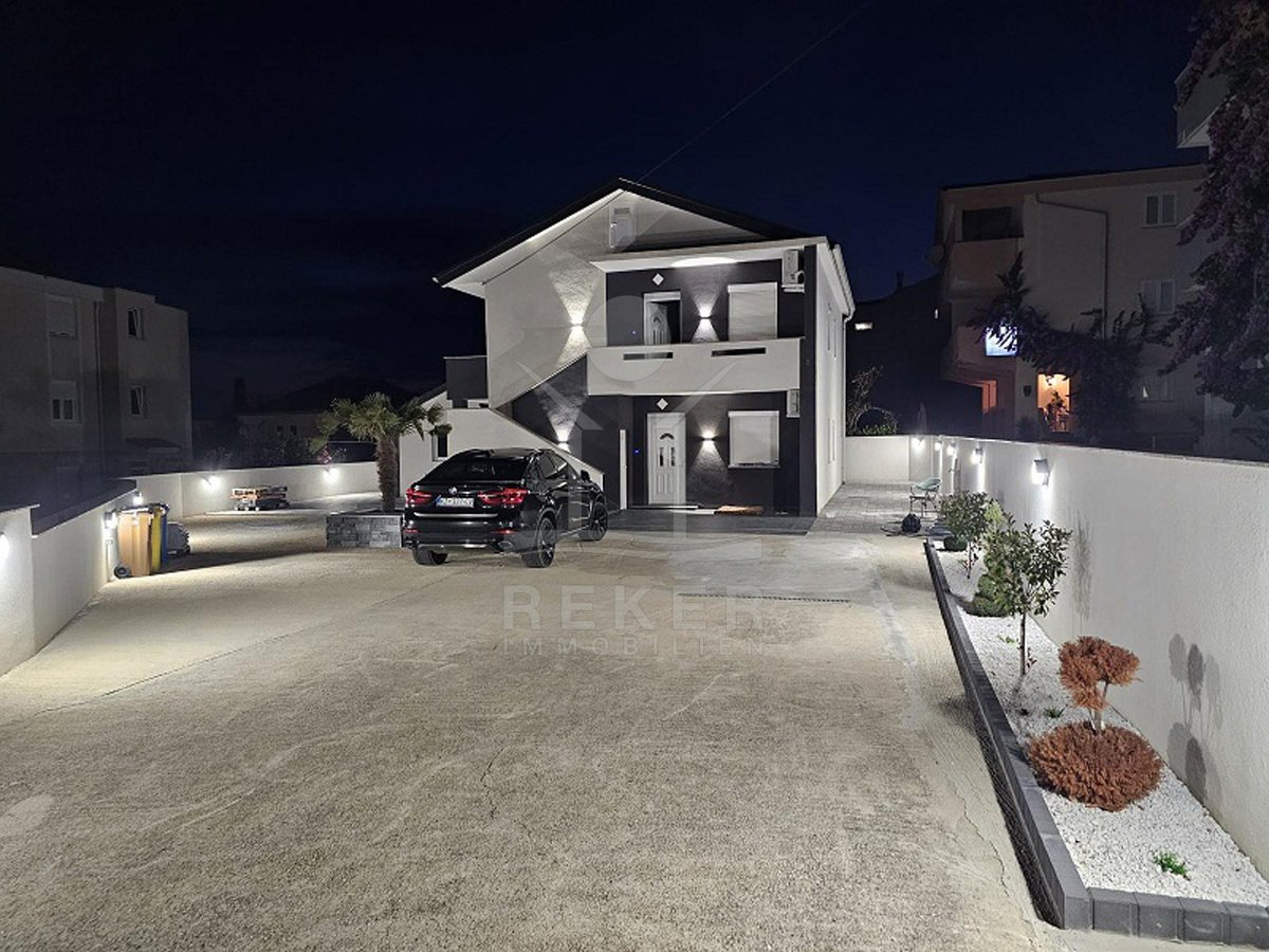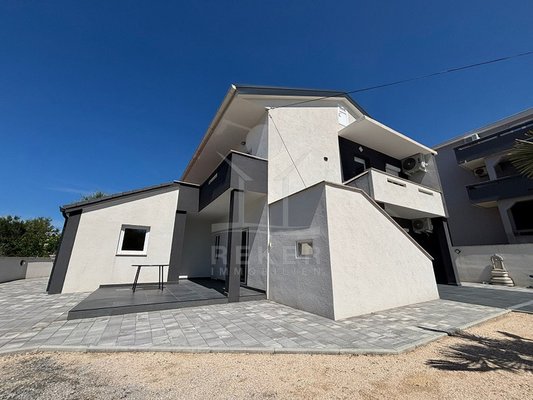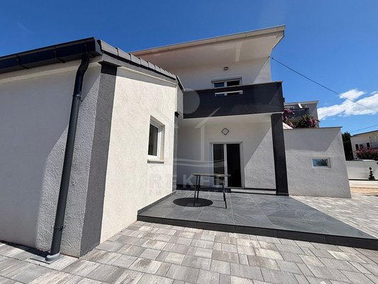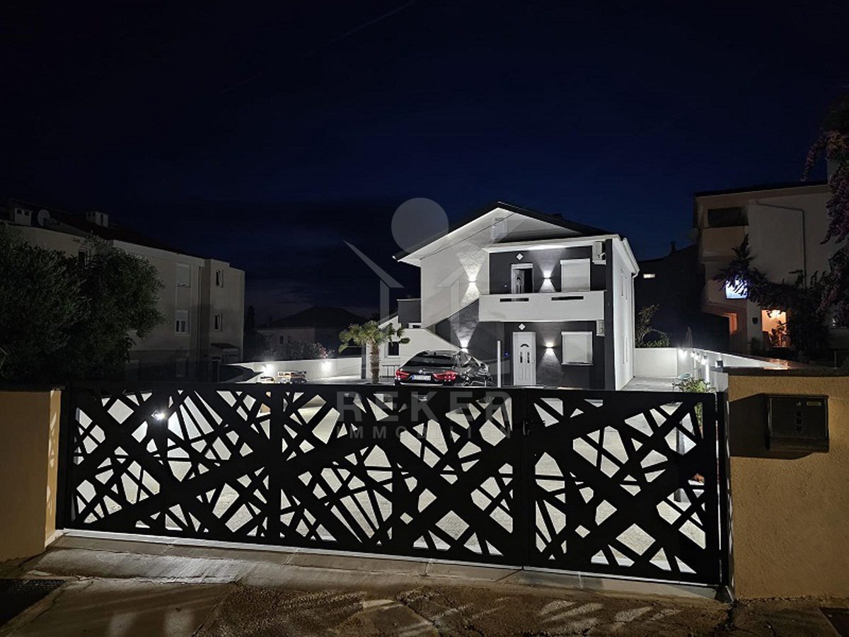 Sie suchen nach einer Immobilie mit mehreren Nutzungsmöglichkeiten? Dieses Wohnhaus in Novalja liegt oberhalb des Stadtzentrums – nur etwa 450 Meter vom Trubel entfernt, und auch der Strand ist in knapp 550 Metern bequem zu Fuß erreichbar. Im Innenhof gibt’s Platz für mehrere Autos – alles ist gepflastert und gepflegt. Ein modernes Tor sichert das Grundstück, und ein paar Zierpflanzen lockern das Bild auf.