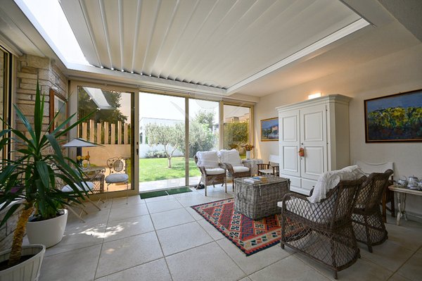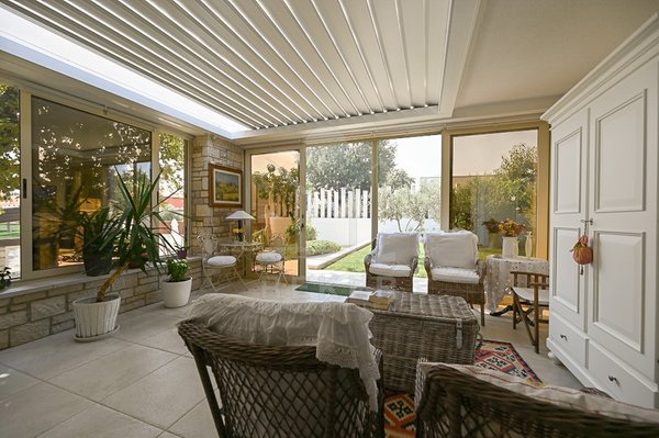 Die geschlossene Terrasse mit Biopergola und Atrium lässt Sie das ganze Jahr über lichtdurchflutet wohnen. Klimaanlage und elektrische Heizung sorgen jederzeit für angenehme Temperaturen, ein Zuhause zum Wohlfühlen.