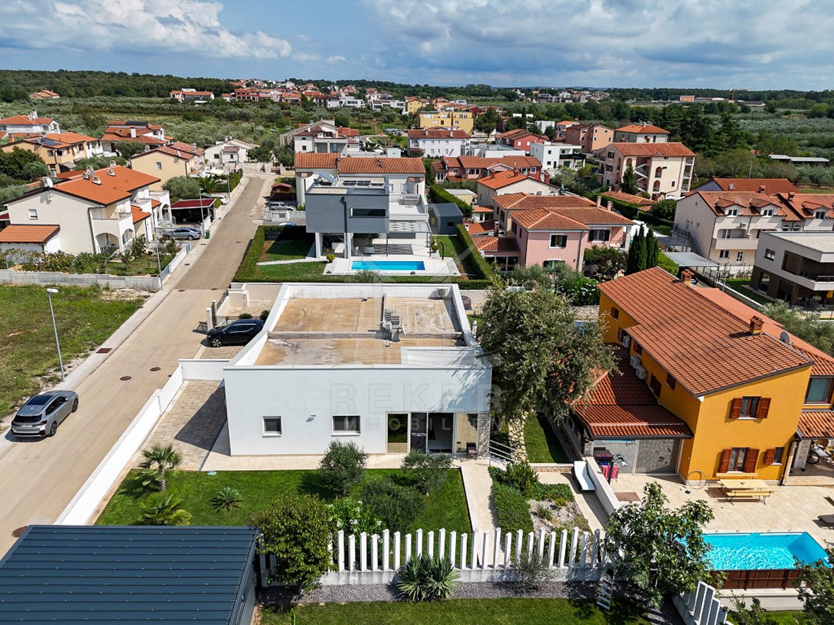 In einem ruhigen und sonnigen Teil von Novigrad steht dieses charmante Doppelhaus aus dem Jahr 2020. Mit 95 m² Wohnfläche bietet es Wohnen auf einer Ebene. Praktisch für Paare, Senioren oder alle, die barrierarm leben möchten. Zwei Stellplätze im umzäunten Hof machen das Parken bequem und sicher.