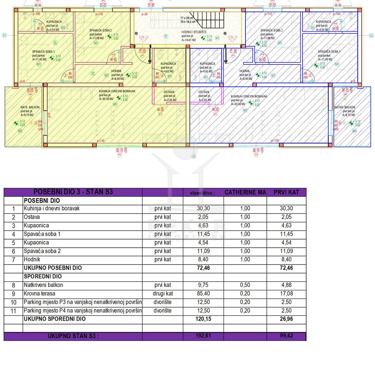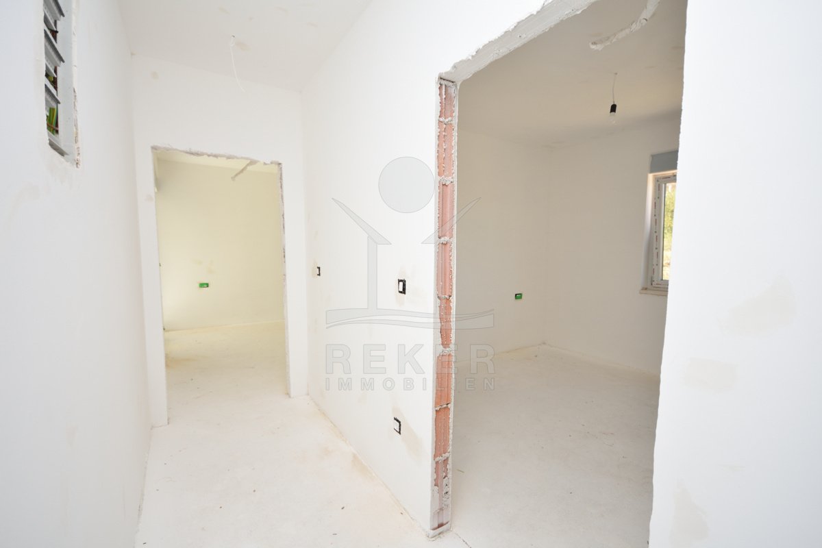 Das Haus besteht aus nur vier Einheiten. Überschaubar, privat, angenehm. Es verfügt über Erd- und Obergeschoss sowie private Dachterrassen. Jede Wohnung hat einen eigenen Parkplatz. Der Neubau aus dem Jahr 2025 befindet sich in den letzten Arbeiten zur Fertigstellung.