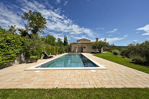 Das 2.441 m² große Grundstück ist vollständig eingefriedet und schenkt Ihnen Privatsphäre. Mediterrane Pflanzen wie Olivenbäume, Lavendel und Rosmarin schaffen ein harmonisches Ambiente. Ein gepflegter Rasen mit Bewässerungssystem und großzügige Terrassen runden das Bild ab. Mittelpunkt ist der große Swimmingpool mit angrenzendem Grillplatz. Perfekt für entspannte Stunden oder gesellige Abende.