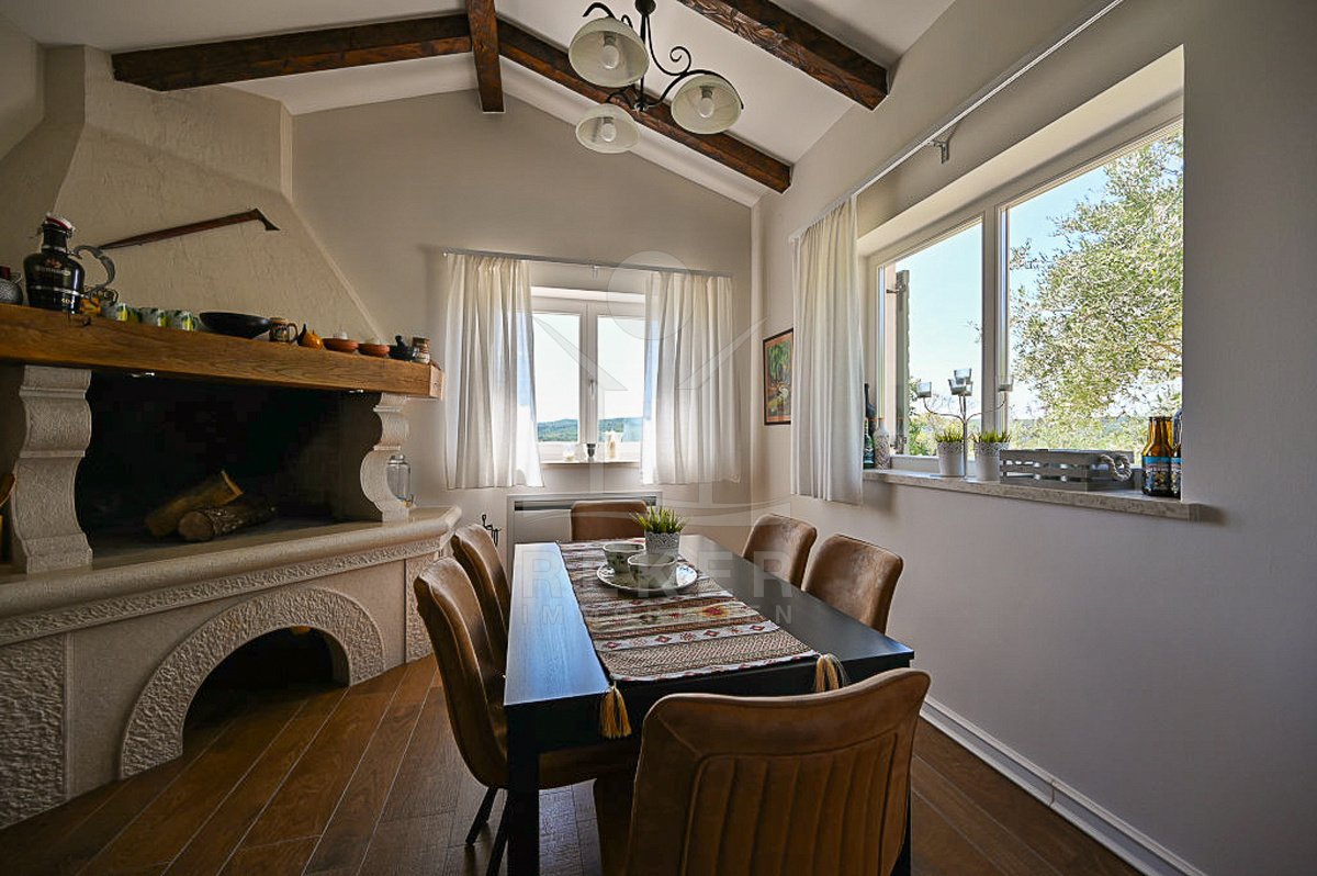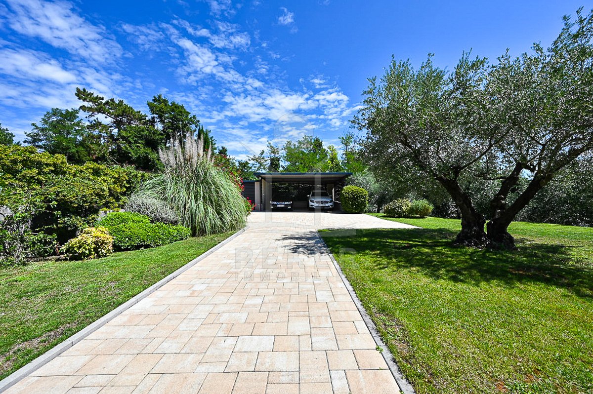 Diese Villa nahe Grožnjan vereint moderne Architektur mit einer besonderen Lage. Rund 6 Kilometer vom Ortszentrum entfernt und nur 10 bis 15 Kilometer vom Meer genießen Sie Ruhe und einen weiten Panoramablick auf Wälder, Weinberge, sanfte Hügel sowie die historischen Orte Grožnjan und Motovun. Vier Stellplätze, darunter ein Carport, bieten genügend Platz für Ihre Fahrzeuge.