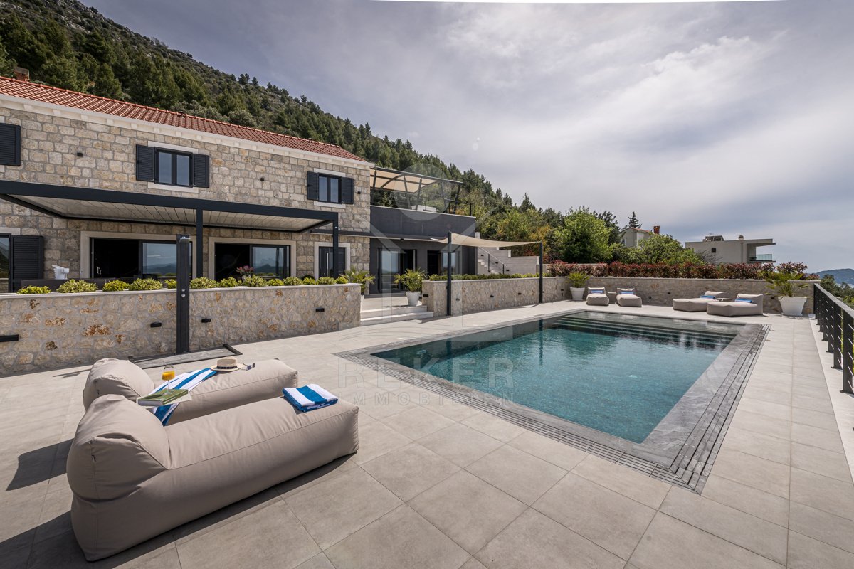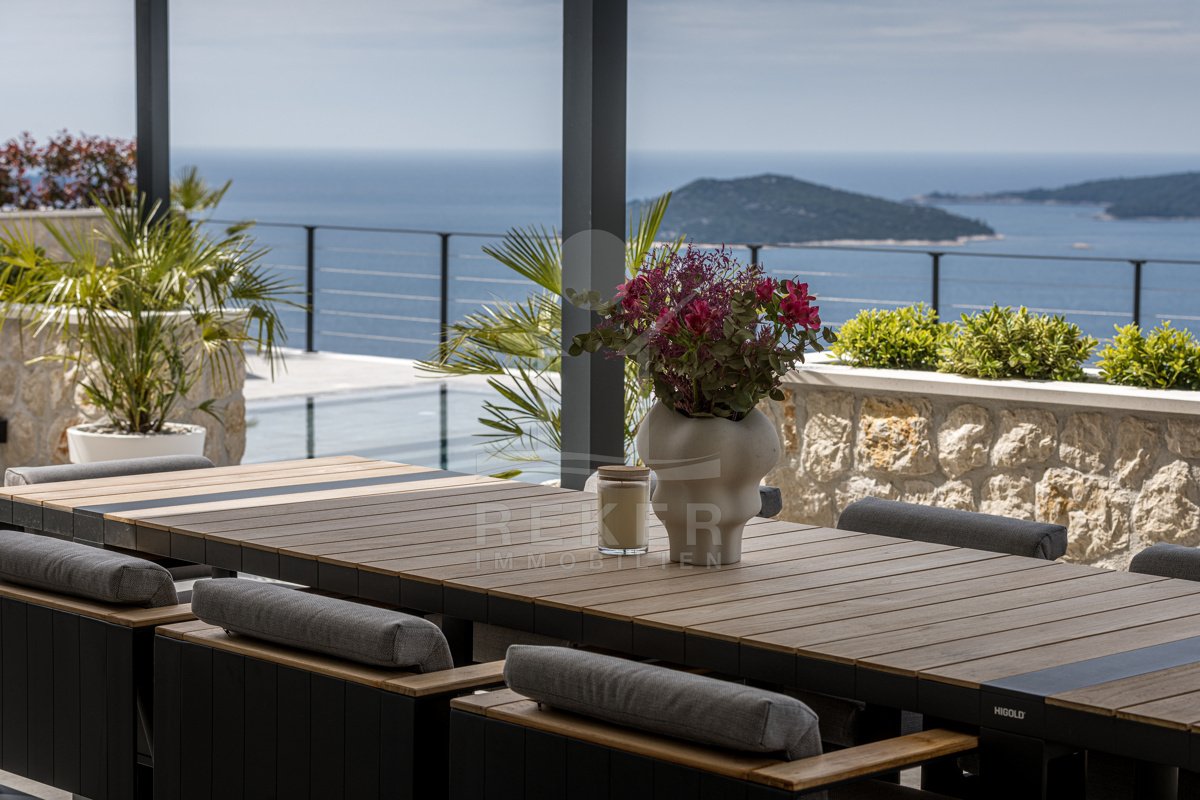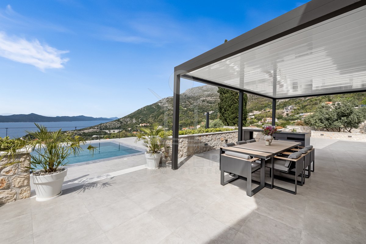 Eingebettet in eine idyllische Hügellandschaft nur etwa 15 Minuten von Dubrovnik entfernt, befindet sich diese neu erbaute Luxusvilla in einem kleinen, ruhigen Ort. Dank der Hanglage genießen Sie hier einen unverbaubaren Blick über die grüne Umgebung