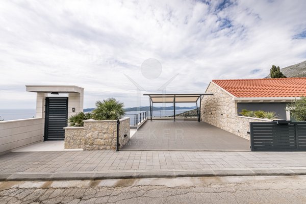 Eingebettet in eine idyllische Hügellandschaft nur etwa 15 Minuten von Dubrovnik entfernt, befindet sich diese neu erbaute Luxusvilla in einem kleinen, ruhigen Ort. Dank der Hanglage genießen Sie hier einen unverbaubaren Blick über die grüne Umgebung und den westlichen Horizont mit Sonnenuntergängen über dem Meer. Die Anfahrt erfolgt bequem über eine Zufahrtsstraße, am Haus stehen überdachte Parkplätze zur Verfügung.