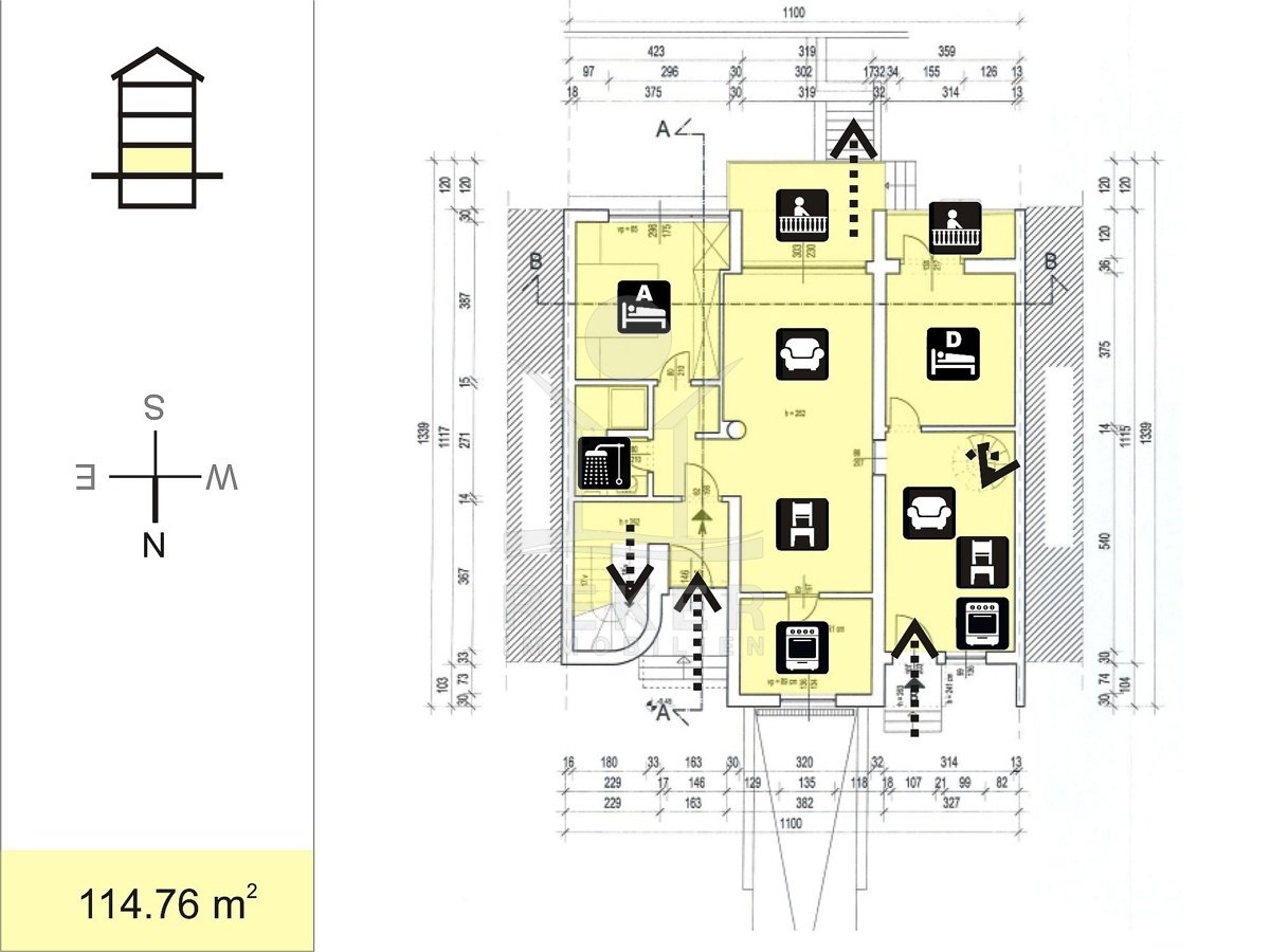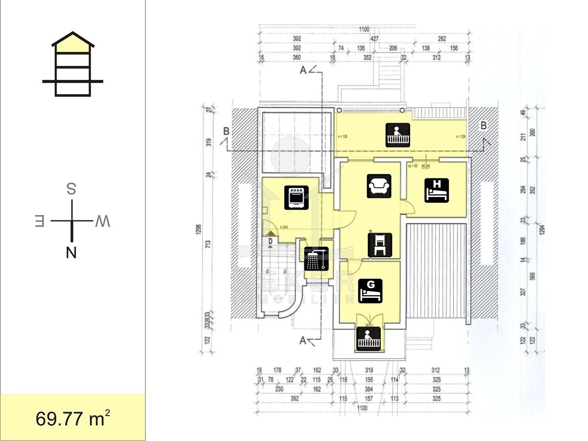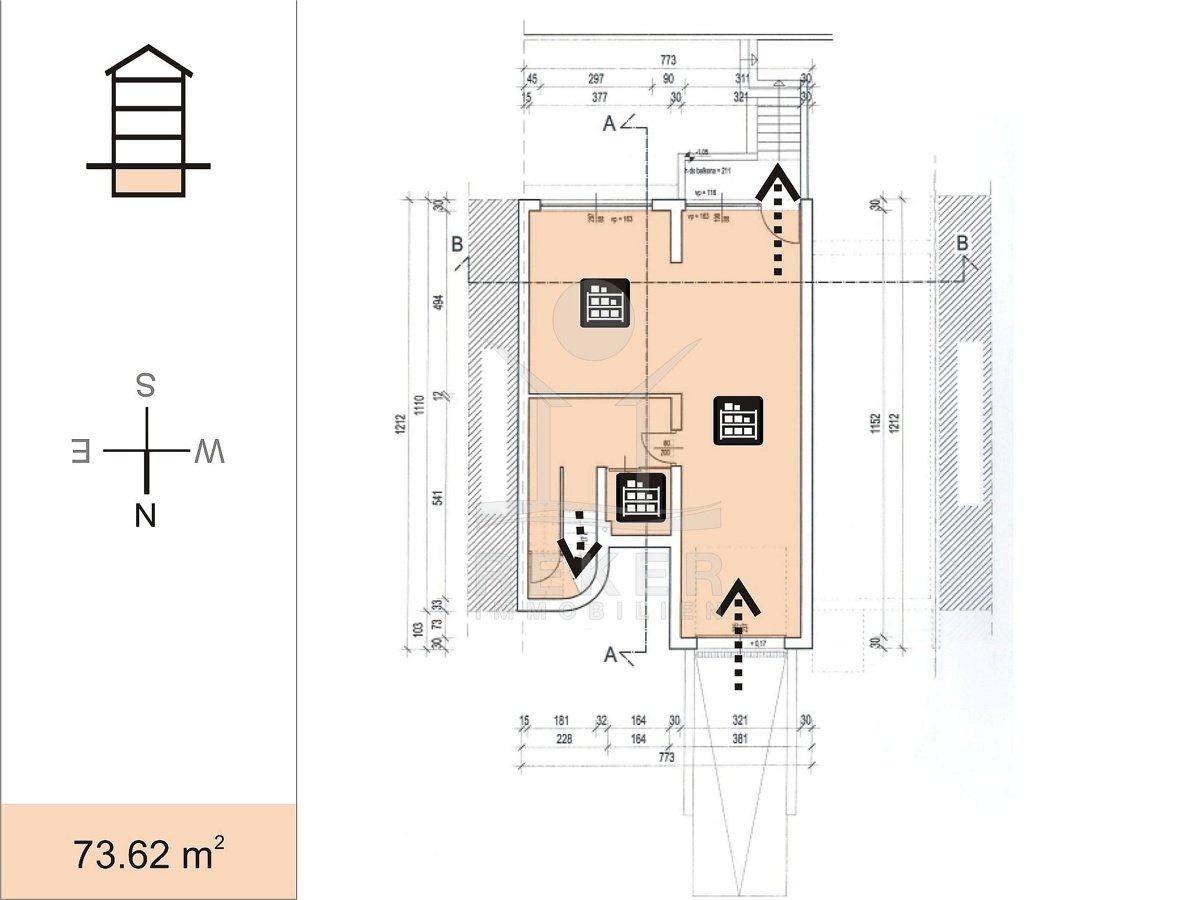 In einer ruhigen Sackgasse, nur wenige Gehminuten von der romantischen Altstadt von Rovinj entfernt, steht dieses Apartmenthaus. Eine Lage mit vielen Möglichkeiten. Alles, was Sie im Alltag brauchen, erreichen Sie schnell: Geschäfte, Restaurants, Cafés, Schulen und Kindergärten. Auch die Marina ist nah. Die Lone-Bucht liegt in 1,5 km Entfernung, den Strand Škaraba erreichen Sie nach 2 km. Ihr Auto parken Sie bequem in der hauseigenen Garage im Untergeschoss.