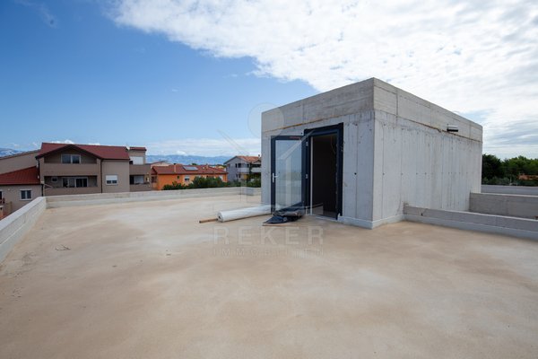 Im ruhigen, prestigeträchtigen Teil der Insel Vir wartet diese moderne Doppelhaushälfte auf Sie. Nur 100 Meter trennen Sie vom Strand und der Adria. Drei Stellplätze auf dem Grundstück machen das Parken für Familie und Gäste einfach.