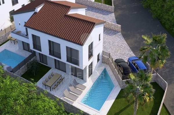 Auf der Insel Krk, im beliebten Ort Malinska, entsteht bis Ende 2025 ein modernes Doppelhaus. Es verbindet eine ruhige, grün bewaldete Umgebung mit kurzer Distanz zum Ortszentrum und zum Strand. Beides erreichen Sie nach rund 600 Metern. Zwei private