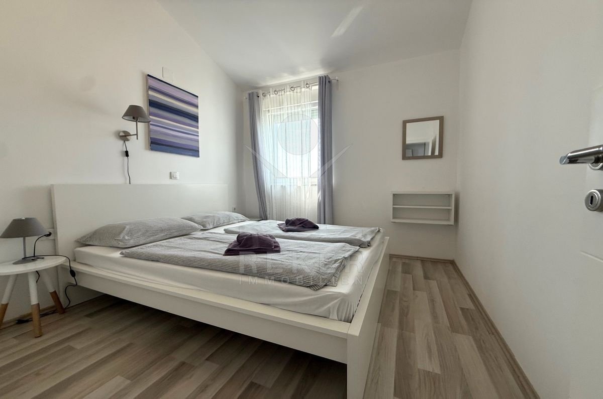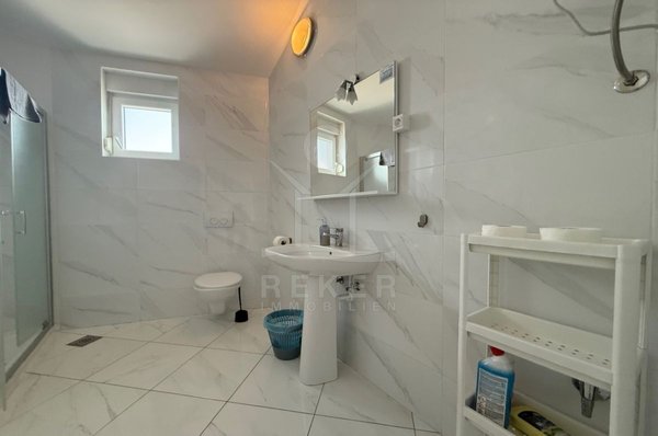 Baška gehört zu den beliebtesten Orten auf Krk. In dieser besonderen Lage, direkt am Meer, steht dieses moderne Apartmenthaus. Nur 20 Meter sind es bis zur Uferpromenade, der freie Blick auf die Bucht ist unverstellt. Ein Platz in erster Reihe.