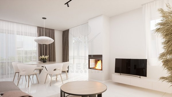 Der Außenbereich bietet eine 84 m² große Terrasse, die zu entspannten Stunden und geselligen Abenden einlädt. Der Swimmingpool, derzeit im Bau, sorgt bald für erfrischende Abkühlung und zusätzlichen Komfort.