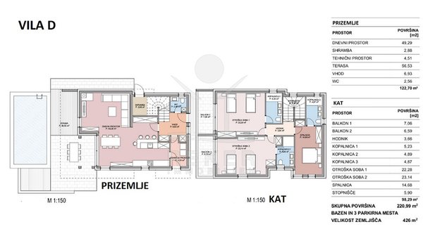 220 m² Wohnfläche: Neubauvilla mit 3 Bädern, Meerblick-Balkonen auf Pag