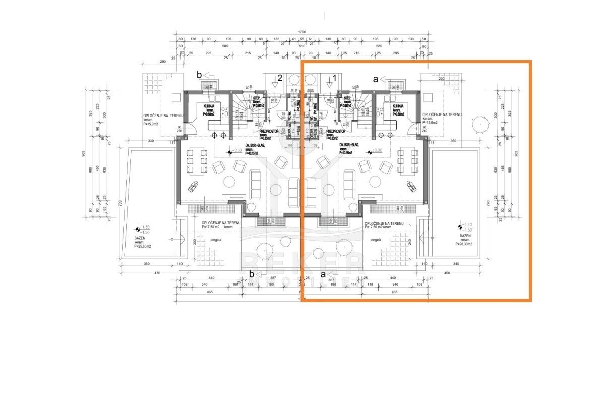 In Malinska auf der Insel Krk entsteht ein modernes Doppelhaus mit 193 m² Wohnfläche. Die Lage ist ruhig, das Meer nur 700 Meter entfernt. Hier genießen Sie Privatsphäre und zugleich kurze Wege. Zwei überdachte Stellplätze direkt am Haus machen den