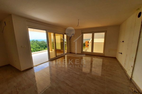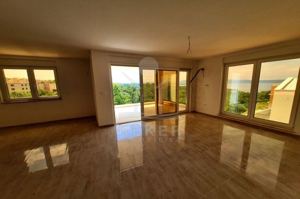 Komfort – Stil – Panorama: Neubauwohnung auf Krk mit zwei Terrassen und Meerblick