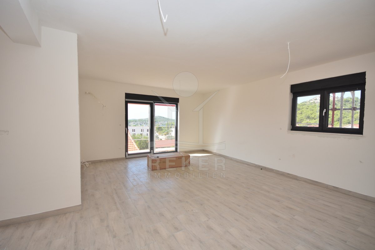 Im Stadtteil Crnica von Šibenik wartet eine moderne Drei-Zimmer-Wohnung im ersten Stock eines Neubaus mit nur drei Einheiten. Die Lage zählt zu den gefragtesten der Stadt: ruhig, sonnig und naturnah, zugleich mit schöner Aussicht. Der eigene Garagenstellplatz ist im Preis enthalten und macht das Parken unkompliziert. Das kleine Gebäude mit nur drei Wohnungen garantiert Privatsphäre und Ruhe. Ein attraktives Zuhause für alle, die modernes Wohnen in überschaubarer Umgebung suchen.
