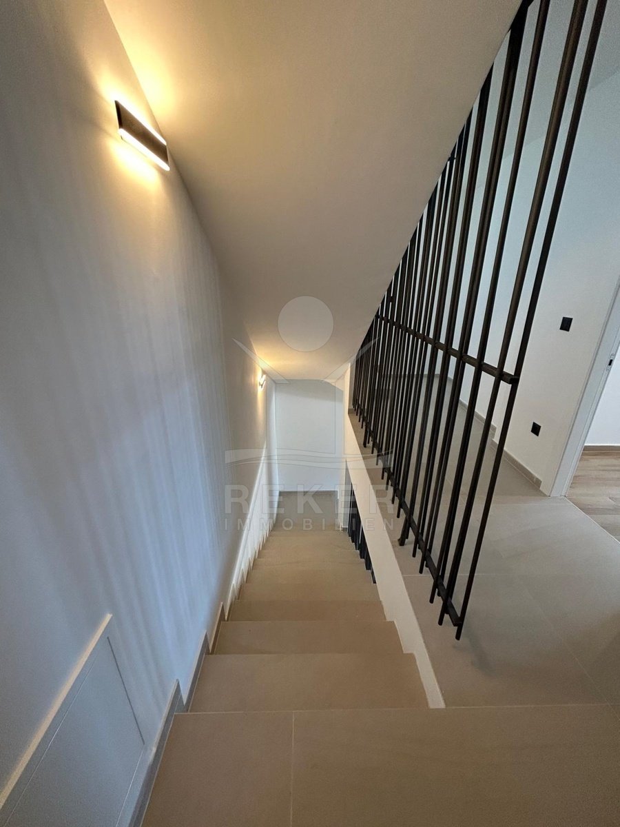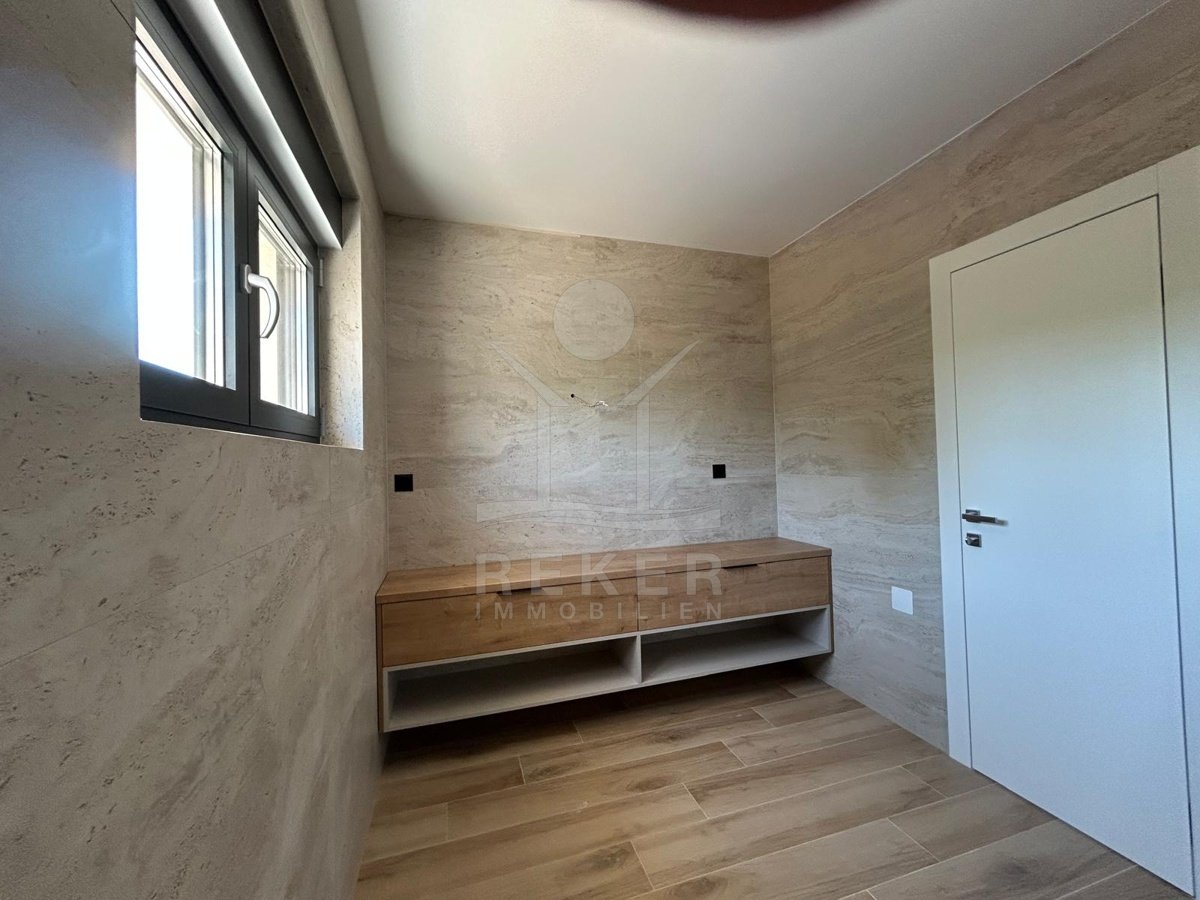 Drage, ein ruhiger Küstenort zwischen Zadar und Šibenik, bildet den Rahmen für diese moderne Doppelhaushälfte in bester Lage. Das Meer ist hier glasklar, dazu kommen ein neuer Yachthafen und mediterranes Flair. Strände und Nationalparks erreichen Sie