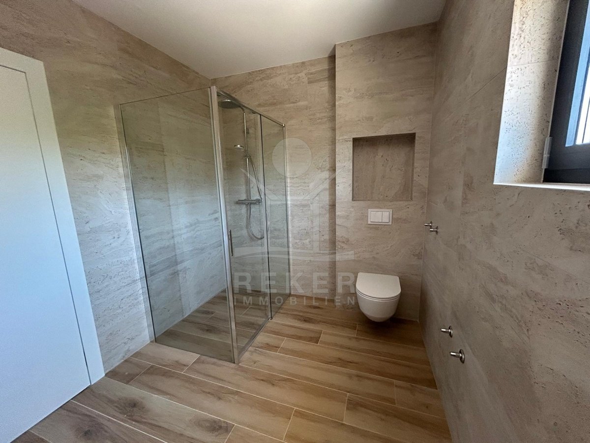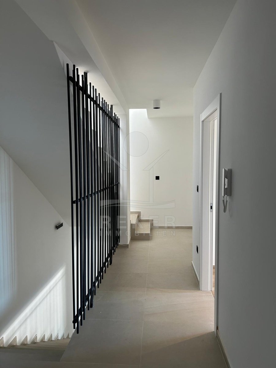 Drage, ein ruhiger Küstenort zwischen Zadar und Šibenik, bildet den Rahmen für diese moderne Doppelhaushälfte in bester Lage. Das Meer ist hier glasklar, dazu kommen ein neuer Yachthafen und mediterranes Flair. Strände und Nationalparks erreichen Sie schnell, der Flughafen Zadar ist nur 35 Minuten entfernt. Drei private Stellplätze sorgen für bequemen Alltag.