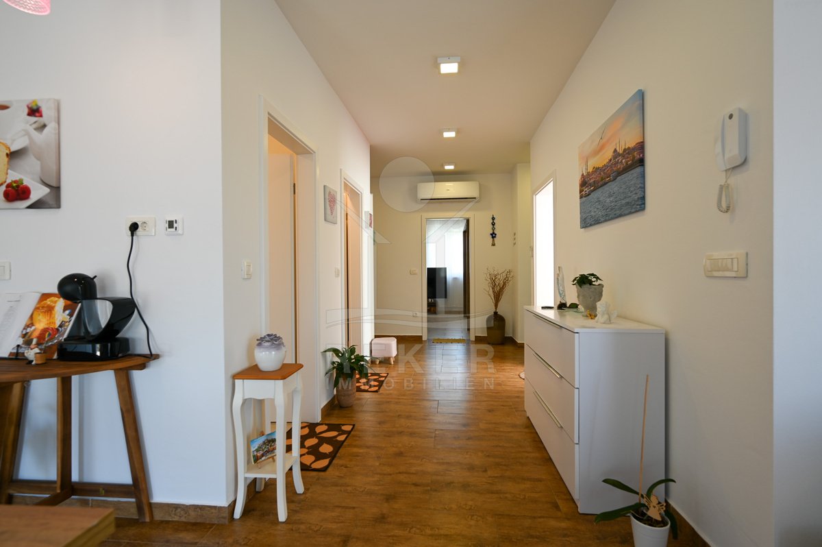 Novigrad verbindet Meer und Altstadt auf besondere Weise. Nur 500 Meter trennen diese Wohnung vom Ufer, genauso nah sind Sie im Zentrum. Sie wohnen ruhig und genießen trotzdem alle Vorzüge der Stadt. Zwei private Stellplätze direkt am Haus machen das Paket komplett. Alles zusammen ergibt ein Zuhause, das moderne Bauweise mit attraktiver Lage verbindet. Ruhe, Natur und urbanes Leben finden hier ihren gemeinsamen Platz.