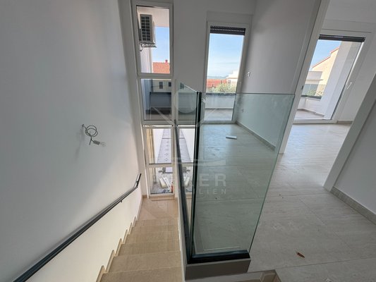 In Dramlje entsteht eine attraktive Neubauwohnung, nur 300 Meter vom Meer, der Strandpromenade und allen wichtigen Einrichtungen entfernt. Das moderne Gebäude fügt sich harmonisch in eine ruhige Wohnstraße ein. Ein privater Stellplatz im