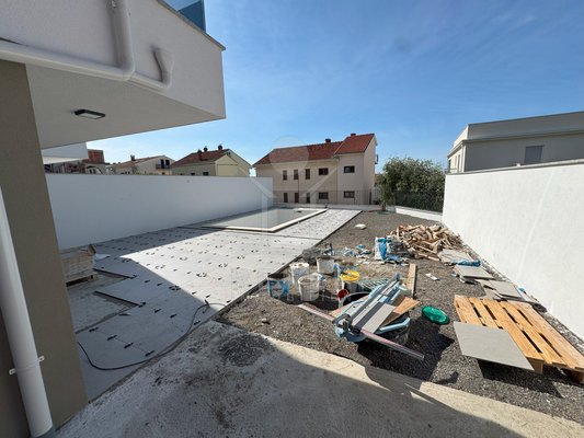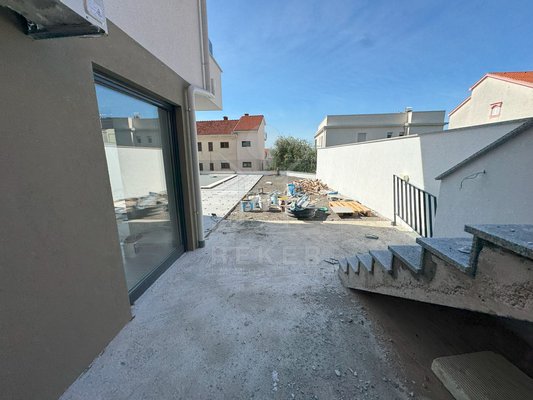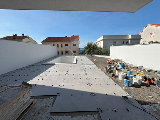 Zweistöckige Neubauwohnung mit Pool und 200 m² Garten in Meeresnähe