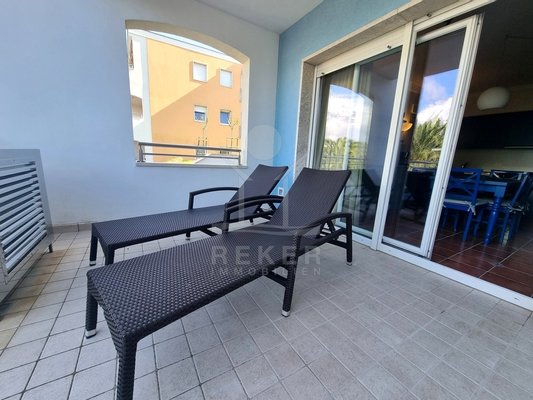 In Crveni Vrh, nur 130 Meter vom Meer entfernt, erwartet Sie ein gepflegtes Apartment im Hochparterre einer modernen Wohnanlage. Die Umgebung ist ruhig, das Zentrum von Umag erreichen Sie nach 3,5 Kilometern. Zusätzlich können Sie einen Stellplatz oder eine Garage erwerben.