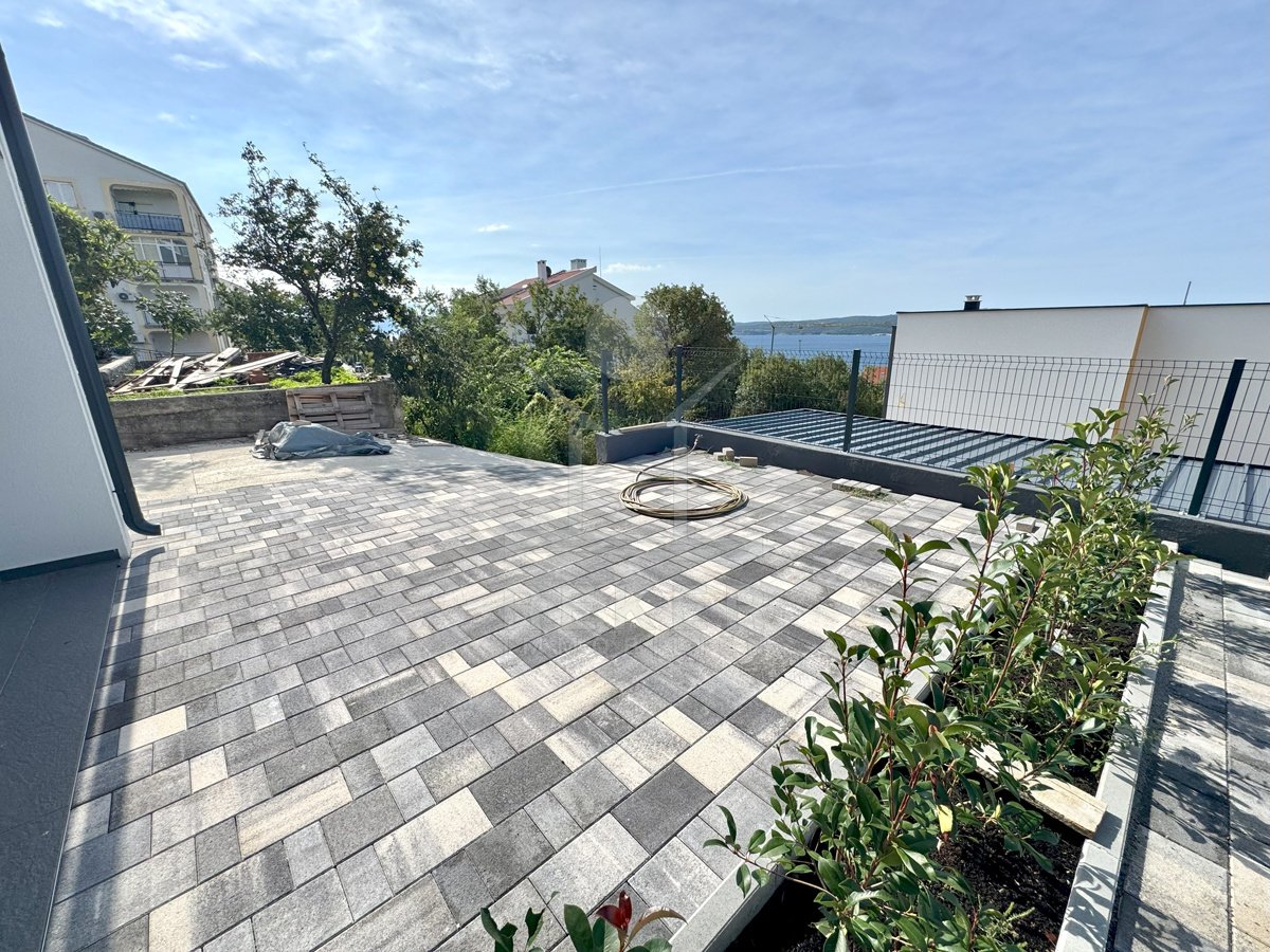 In Dramalj, einem ruhigen Stadtteil von Crikvenica, erwartet Sie eine moderne Maisonette-Wohnung. Nur 600 Meter vom Meer und der Promenade entfernt genießen Sie kurze Wege zu Stränden, Geschäften und Freizeitangeboten, kombiniert mit der Ruhe einer entspannten Wohnlage. Ein privater Stellplatz im Hof sorgt für bequemes Parken direkt am Haus. Der Außenbereich punktet mit Privatsphäre. Hier bietet der Hof Platz für individuelle Gestaltung. Auf Loggia und Terrasse genießen Sie erholsame Stunden mit Panoramablick auf das Meer und die Insel Krk.