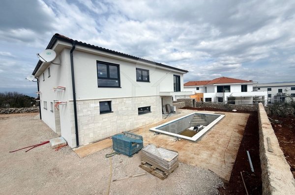 In Malinska auf der Insel Krk entsteht ein neues Doppelhaus. Moderne Architektur trifft hier auf eine ausgezeichnete Lage. Nur 150 Meter bis zum Meer, nur wenige Minuten bis zum Strand. Gleichzeitig genießen Sie Ruhe und Privatsphäre. Zwei Stellplätze am Haus machen das Ankommen leicht. Das Grundstück umfasst 150 m². Dazu gehören ein eigener Garten und ein privater Pool. Ein Platz zum Entspannen. Zum Schwimmen oder für gemeinsame Stunden mit Familie und Freunden. Die 14 m² große Terrasse grenzt direkt an den Wohnbereich und bietet Raum für sonnige Nachmittage und laue Abende.