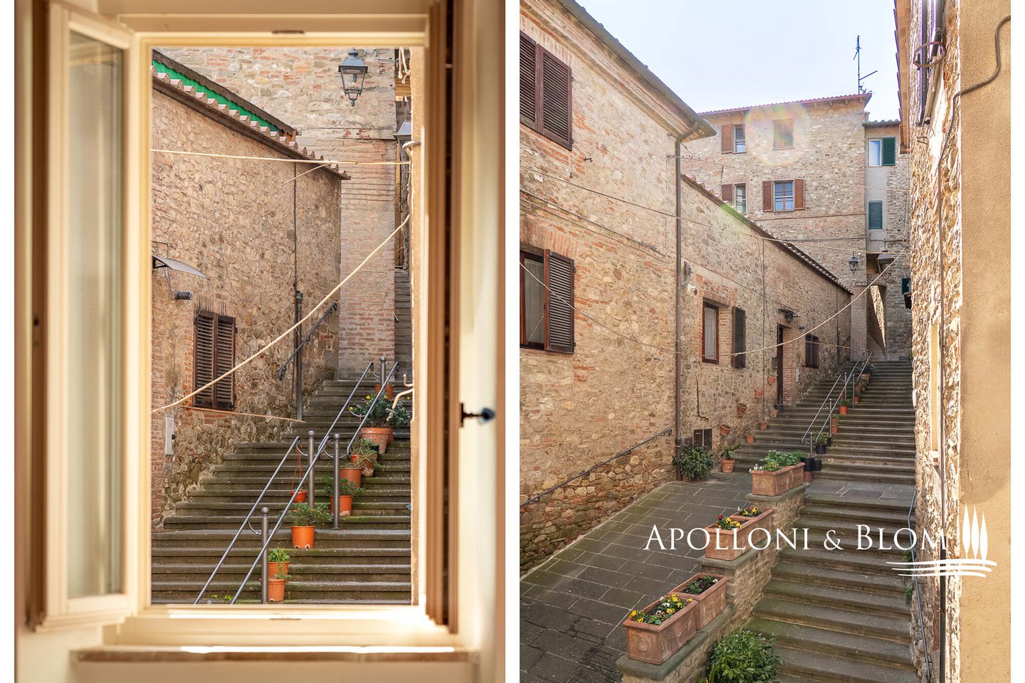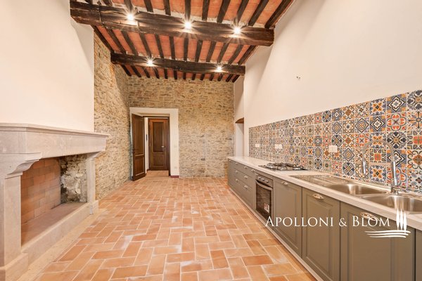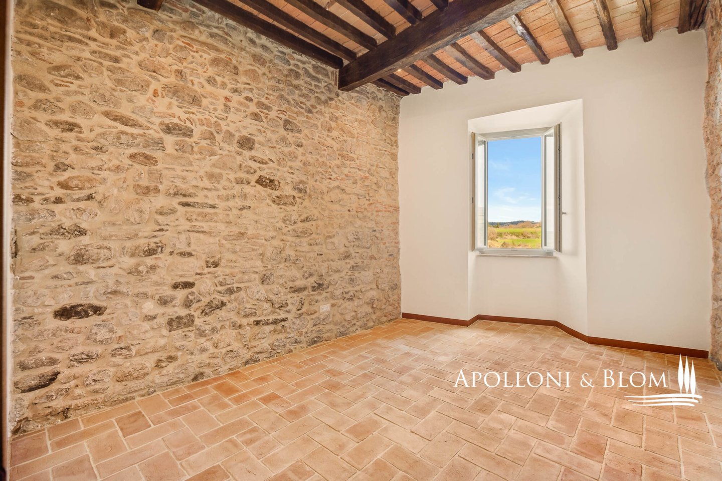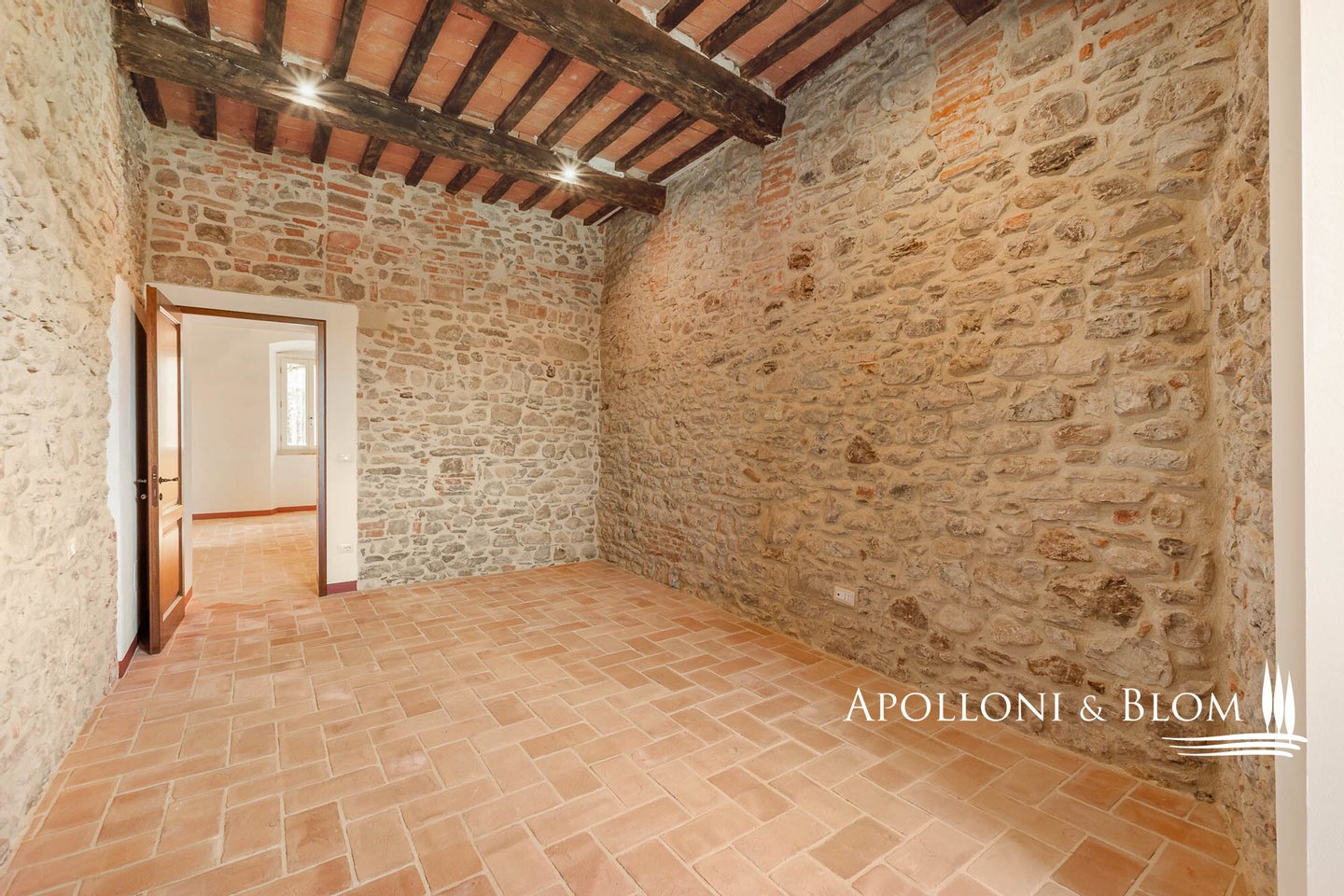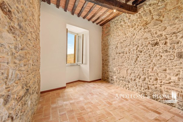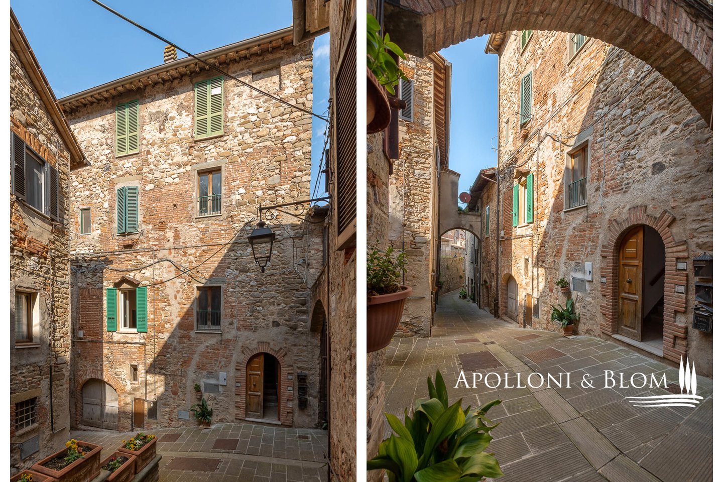 Renovierte Wohnung in historischem Steingebäude: Raum zur Erholung und touristisches Potenzial im mittelalterlichen Dorf Piegaro. Im Herzen des historischen Zentrums von Piegaro, eine Residenz von ca. 335 qm mit Innenräumen in typisch rustikalen Stil kombiniert mit einer Atmosphäre reich an Geschichte. Alle Zimmer bieten einen einzigartigen Charakter, Steinmauern, Kamine, Terrakottaböden und Decken mit sichtbaren Holzbalken. Der einzige Eingang führt in einen rustikalen Raum im Erdgeschoss, von dem aus eine Treppe in die neu renovierte Wohnung im ersten Stock führt, die einen zentralen Korridor, eine geräumige Wohnküche, ein Wohnzimmer mit Kamin, zwei Doppelschlafzimmer, zwei Bäder und eine Waschküche umfasst. Alle Fenster und Türen sind neu mit doppeltem Thermoglas ausgestattet. Die Bäder sind mit neuen Sanitäranlagen und freistehender Dusche ausgestattet. Die dritte Etage und das Dachgeschoss werden derzeit ausgebaut und umfassen eine Wohnung mit zwei Schlafzimmern und ein auszubauendes Penthouse. Von den Fenstern aus hat man einen freien Blick über die Dächer von Piegaro und die umliegende Landschaft. Im Erdgeschoss befinden sich außerdem ein Bad, ein Hinterzimmer als Lagerraum und ein 34 Quadratmeter großer, rustikaler Raum mit separatem Eingang, der sich hervorragend als Gaststätte oder Atelier eignet. An der Straße, die vom Trasimeno-See nach Città della Pieve führt, liegt das historische Zentrum von Piegaro, das auf das Mittelalter zurückgeht und dessen Steinbauten und gepflasterte Straßen noch erhalten sind. Der nahegelegene Fluss Nestore fließt durch diese außergewöhnliche, unberührte Gegend, Wälder und Hügel mit Naturpfaden bis zum Pietrafitta-See. Ein perfekter Ort, um mit der Familie zu leben oder Touristen für ihren Urlaub in einer charmanten historischen Residenz zu beherbergen.
