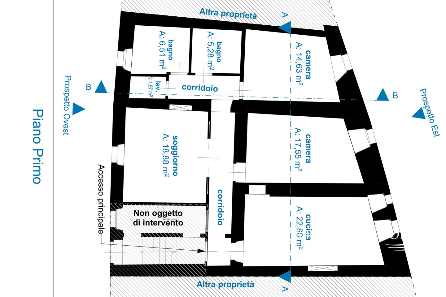 Typ: typischer Wohnsitz im historischen Zentrum von ca. 335 Quadratmetern, einziger Eingang, 2 Wohnungen, Penthouse und rustikal